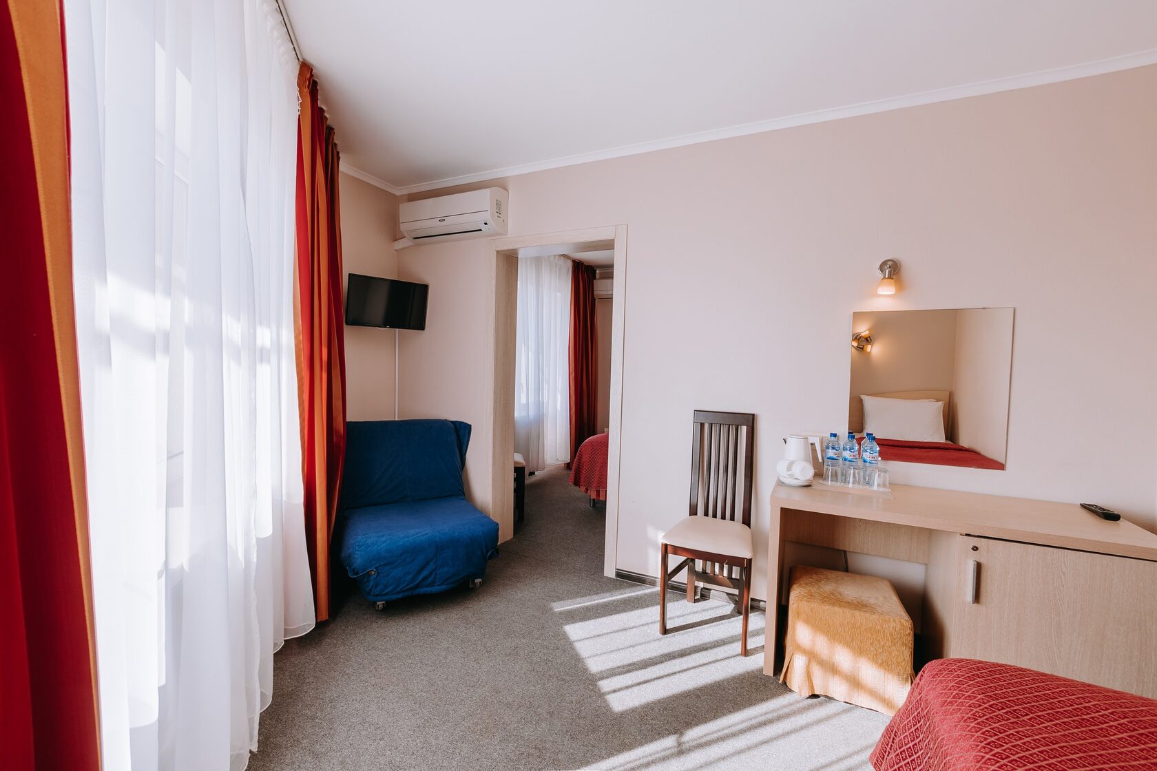 Площадь номера (кв. м.): 45. Мест в номере: 3 (+2 доп.).
