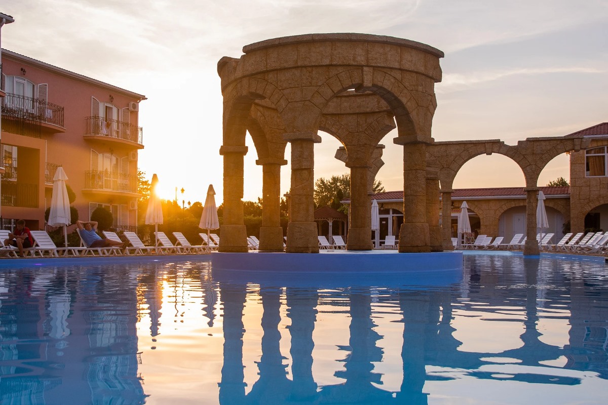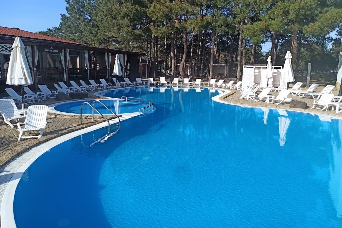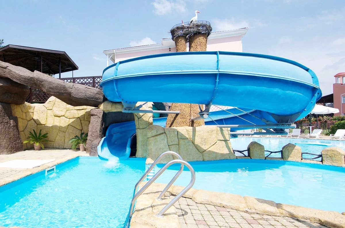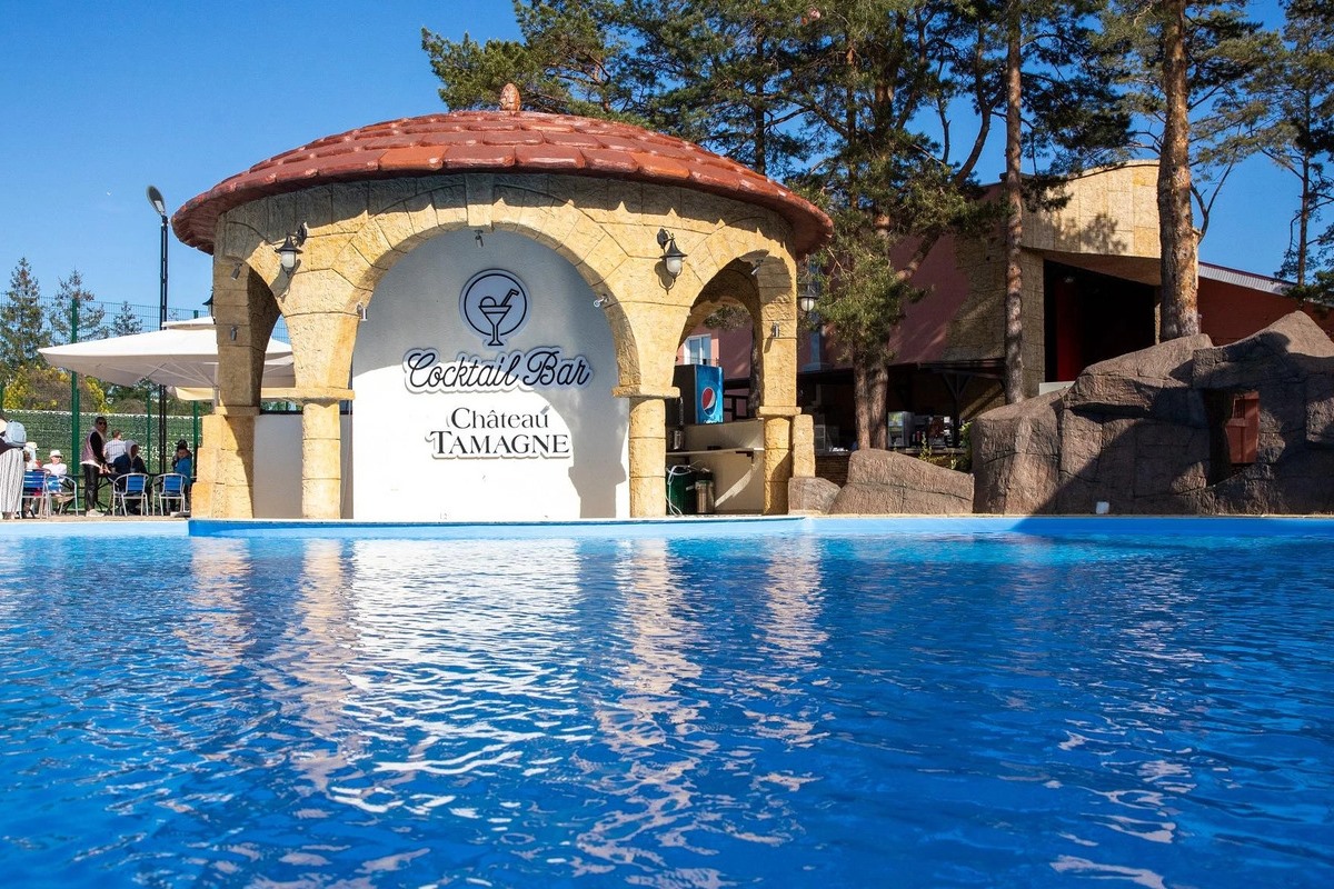 Комплекс из пяти бассейнов, в том числе подогреваемых и закрытого, делает возможным купание детей и взрослых в любую погоду.