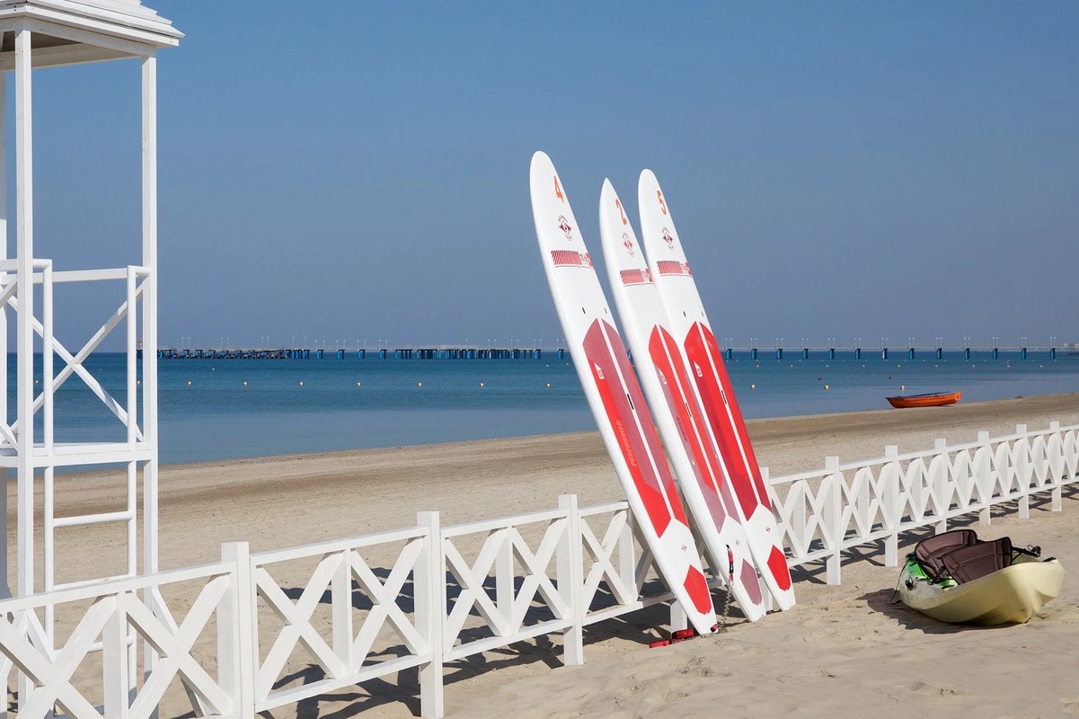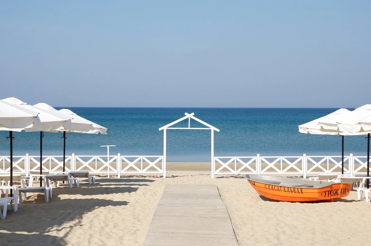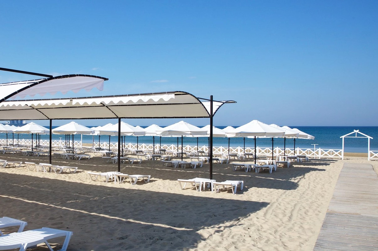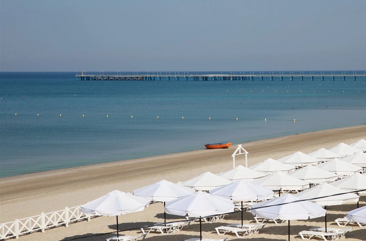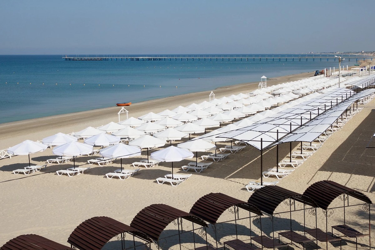Собственный оборудованный пляж располагается в 350 метрах – до него организован регулярный шаттл. Просторный и ухоженный, он сочетает в себе все варианты досуга: от размеренного купания и приема солнечных ванн до активных игр в пляжный волейбол или утренних зарядок, катания на байдарках и SUP-серфах. На пляже работает кафе и детский клуб, проводятся яркие анимационные мероприятия, включая пляжные танцы и дискотеки, спортивные турниры.