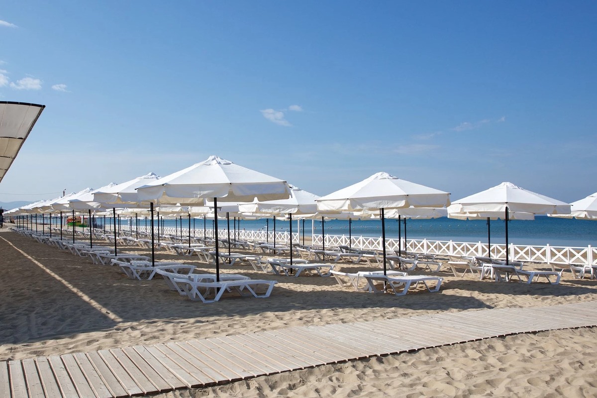 Собственный оборудованный пляж с организацией питания и прокатом инвентаря