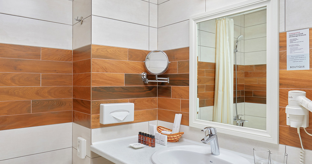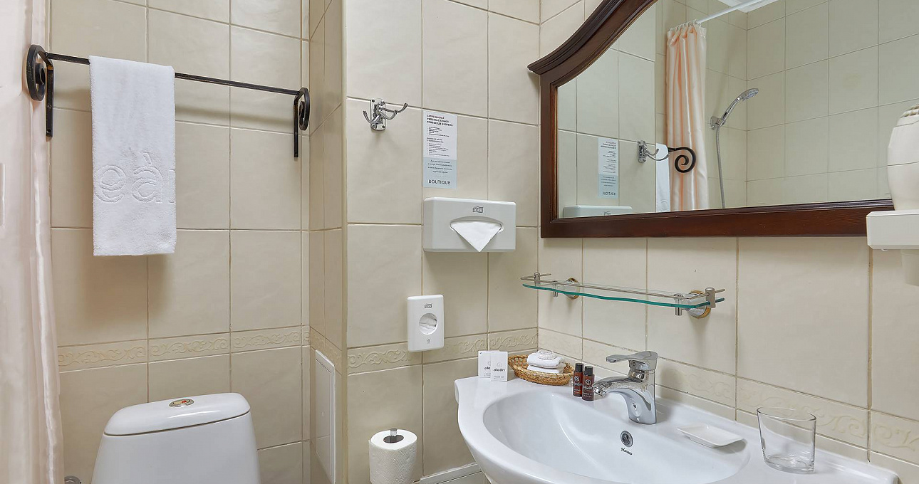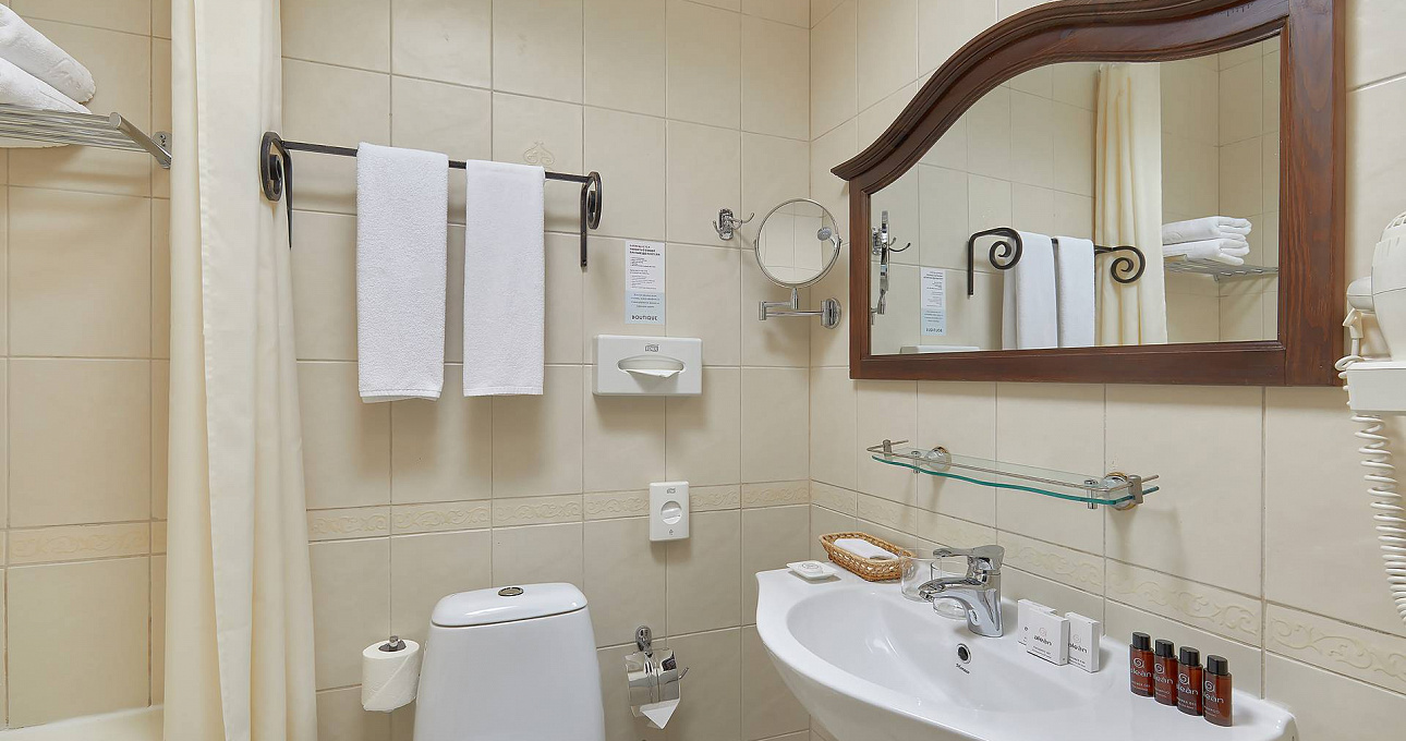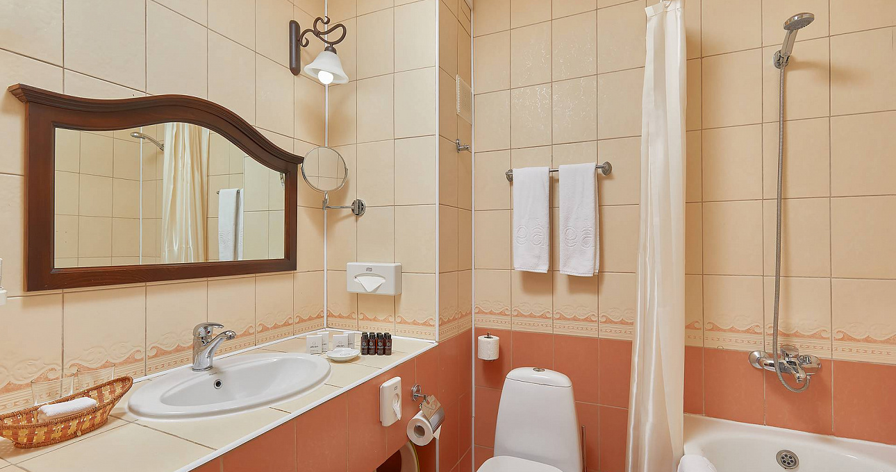 Санузел: Ванна/душевая кабина, фен, детская подставка для ног, детское сиденье на унитаз, косметическое зеркало, косметический набор.