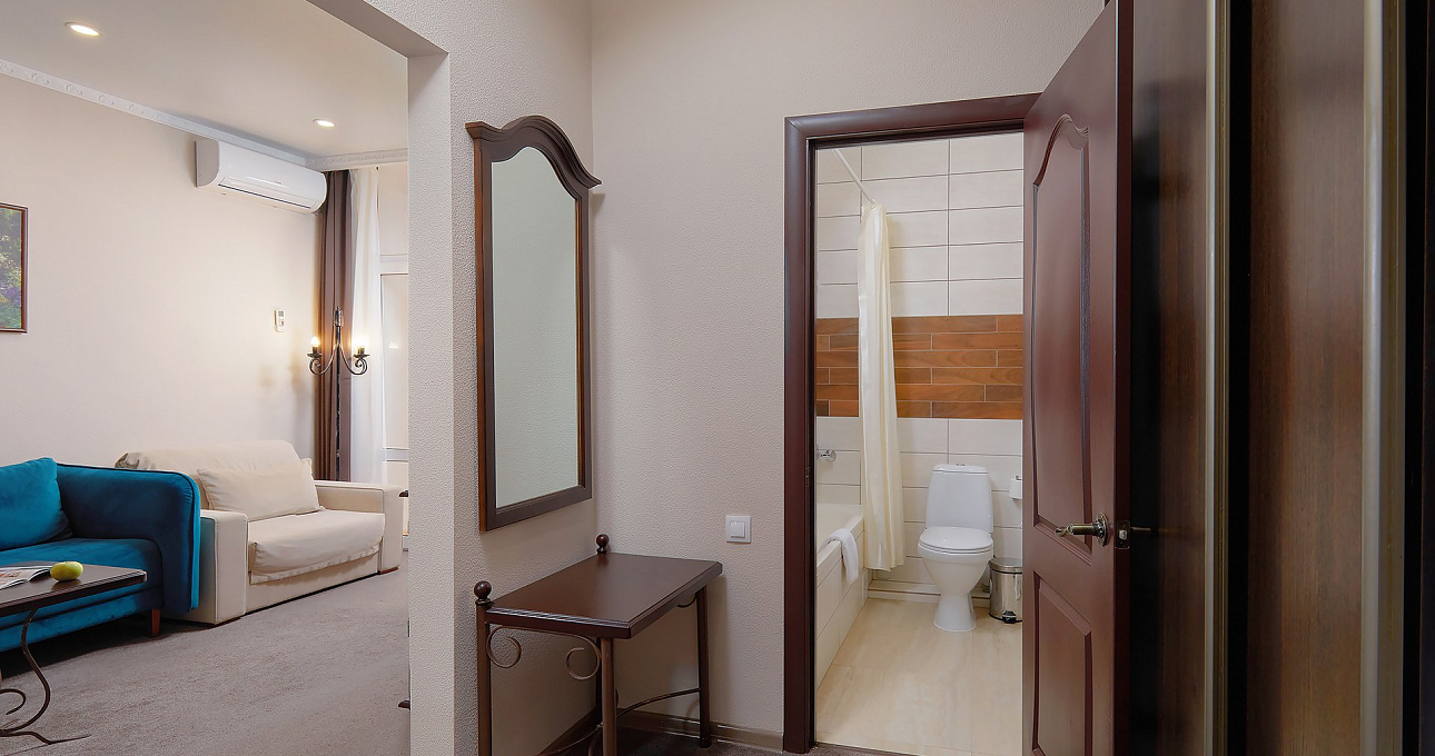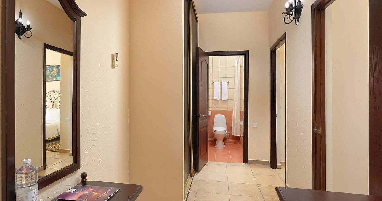 Оборудование: Мини-холодильник, сплит-система, телевизор, сейф, чайная станция, сушилка для белья, гладильная доска и утюг, телефон, Wi-Fi.