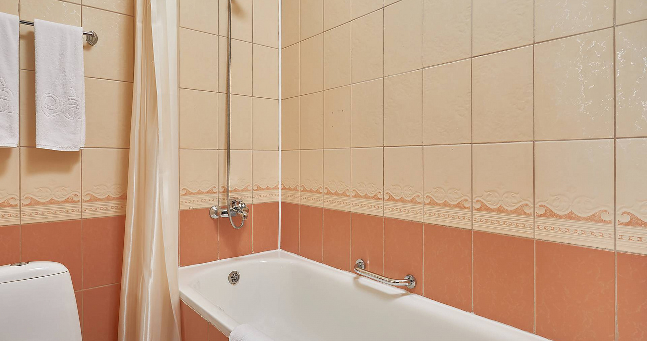 Санузел: Ванна, фен, детская подставка для ног, детское сиденье на унитаз, косметический набор.