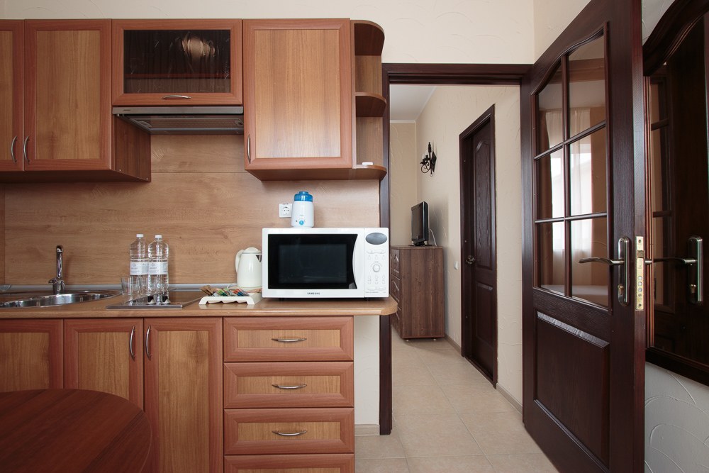 Оборудование: Мини-холодильник, сплит-система, микроволновая печь, телевизор, сейф, чайная станция, кухонная посуда, раковина, сушилка для белья, гладильная доска и утюг, телефон, Wi-Fi.