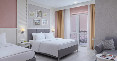 Номерной фонд Alean Family Riviera состоит из 11 категорий номеров разной вместимости и комплектации, под различные составы семей. Можно выбрать одно и двух комнатные номера, в прованском стиле или с современным интерьером.