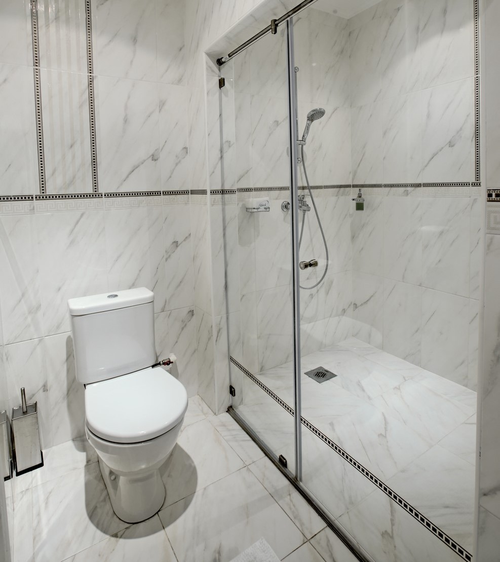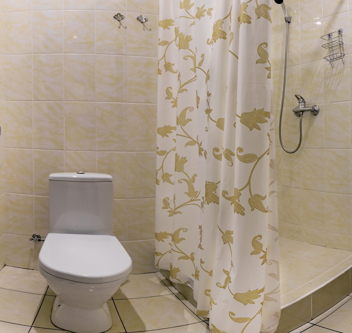 Санузел: с душем, тапочки, туалетные принадлежности, фен, халат.