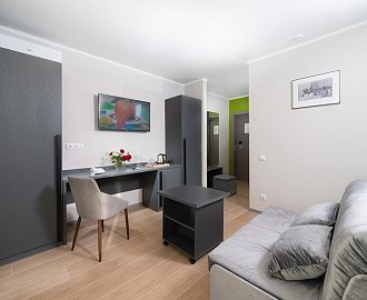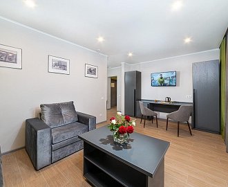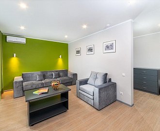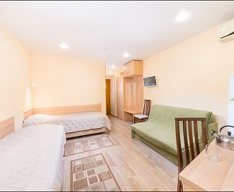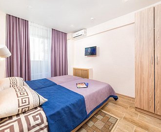 Оборудование: Два телевизора, мини-холодильник, сплит-система, электронные замки, сейф, чайник, чайный набор, светильник, Wi-Fi, отопление.