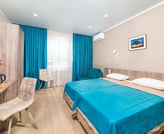 Сервис: смена полотенец: 1 раз в 3 дня, смена постельного белья: 1 раз в 7 дней, уборка номера: ежедневно.