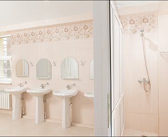 Санузел: Удобства на этаже (отдельные душевые, санузлы, раковины), банные полотенца.