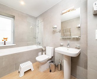 Санузел: Ванна, дополнительный санузел, раковина, унитаз, фен, банные полотенца, гигиенические средства.