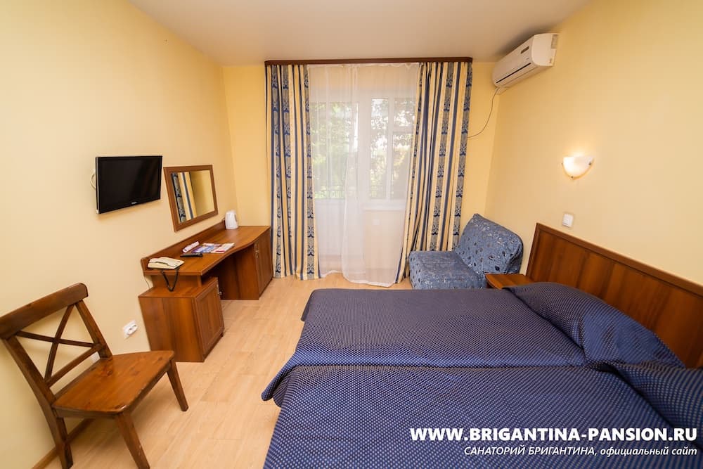 Санаторий «Бригантина», 3 звезды, построен у Витязевского лимана в поселке Витязево. Расстояние от Анапы до поселка по трассе – 16 км, по прямой – 12 км. В непосредственной близости находятся все самые важные объекты инфраструктуры, а также набережная «Паралия» – пешеходный бульвар с многочисленными магазинами, рынками, кафе, ресторанами, концертными залами, а также парком развлечений и аквапарком.