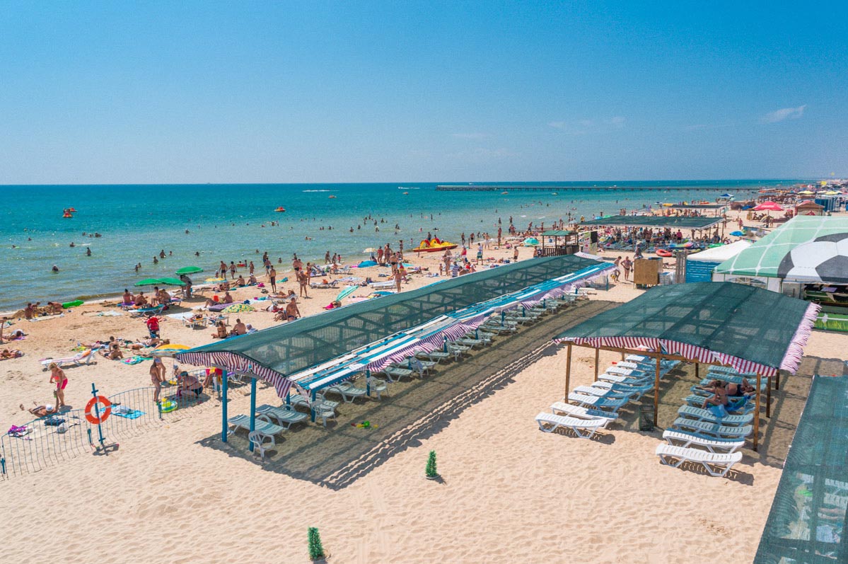 Пляж: Песчаный пляж, Душевые, Кабинки для переодевания, Навесы, Туалет, Шезлонги