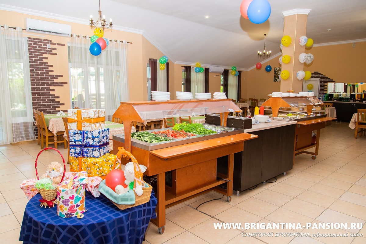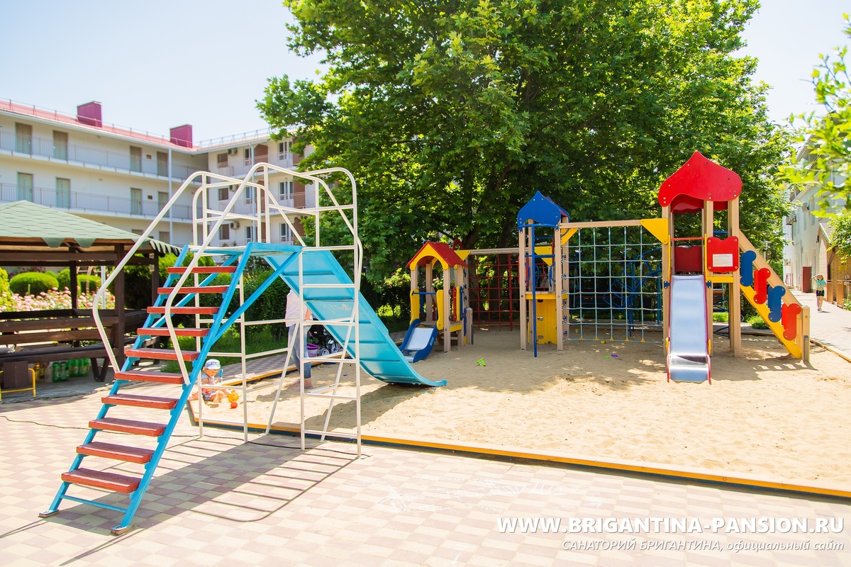 Особое внимание «Бригантина» уделила досугу детей. Кроме отдельного бассейна, здесь есть игровая площадка, маленький аквапарк и детская комната с воспитателем. Юные гости могут развлечь себя настольными играми или повеселиться с аниматорами.