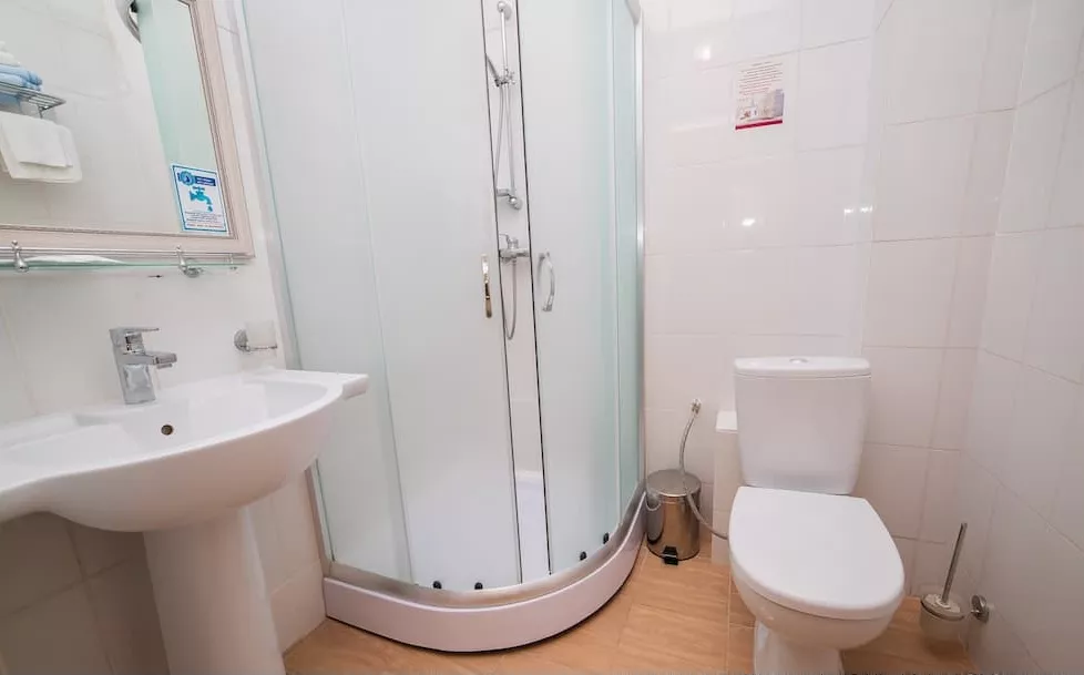 Санузел: Душевая, раковина, унитаз. Укомплектован туалетными принадлежностями и полотенцами.