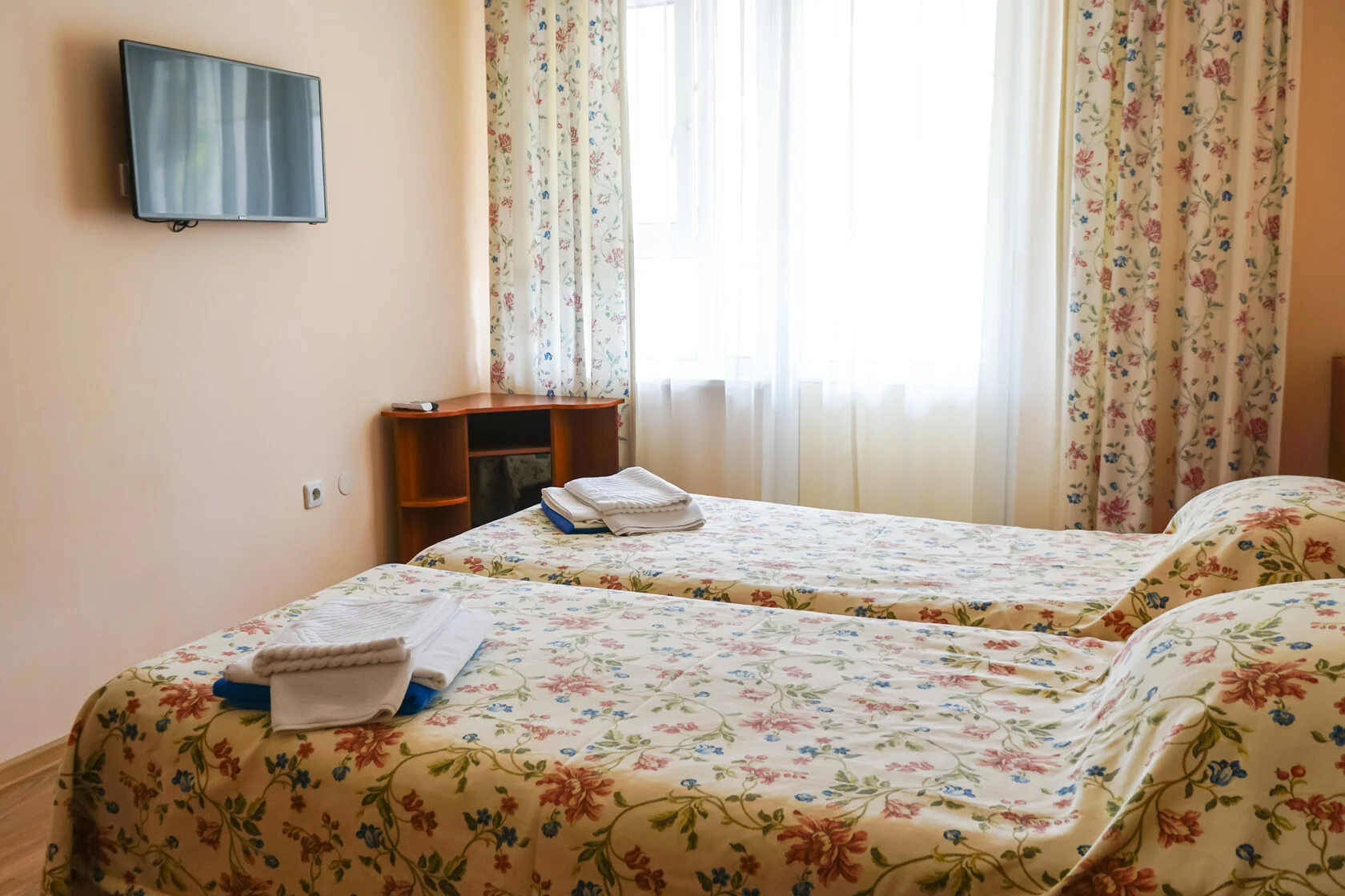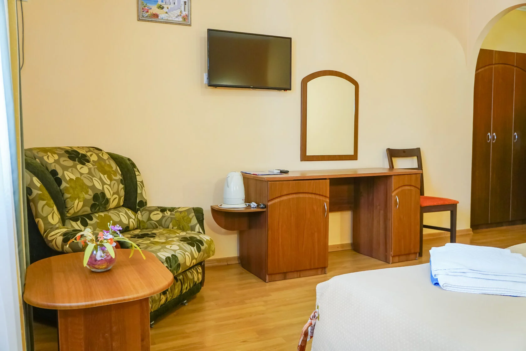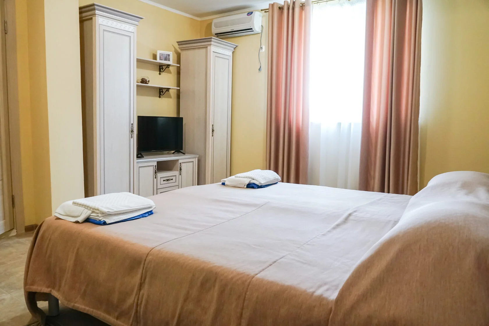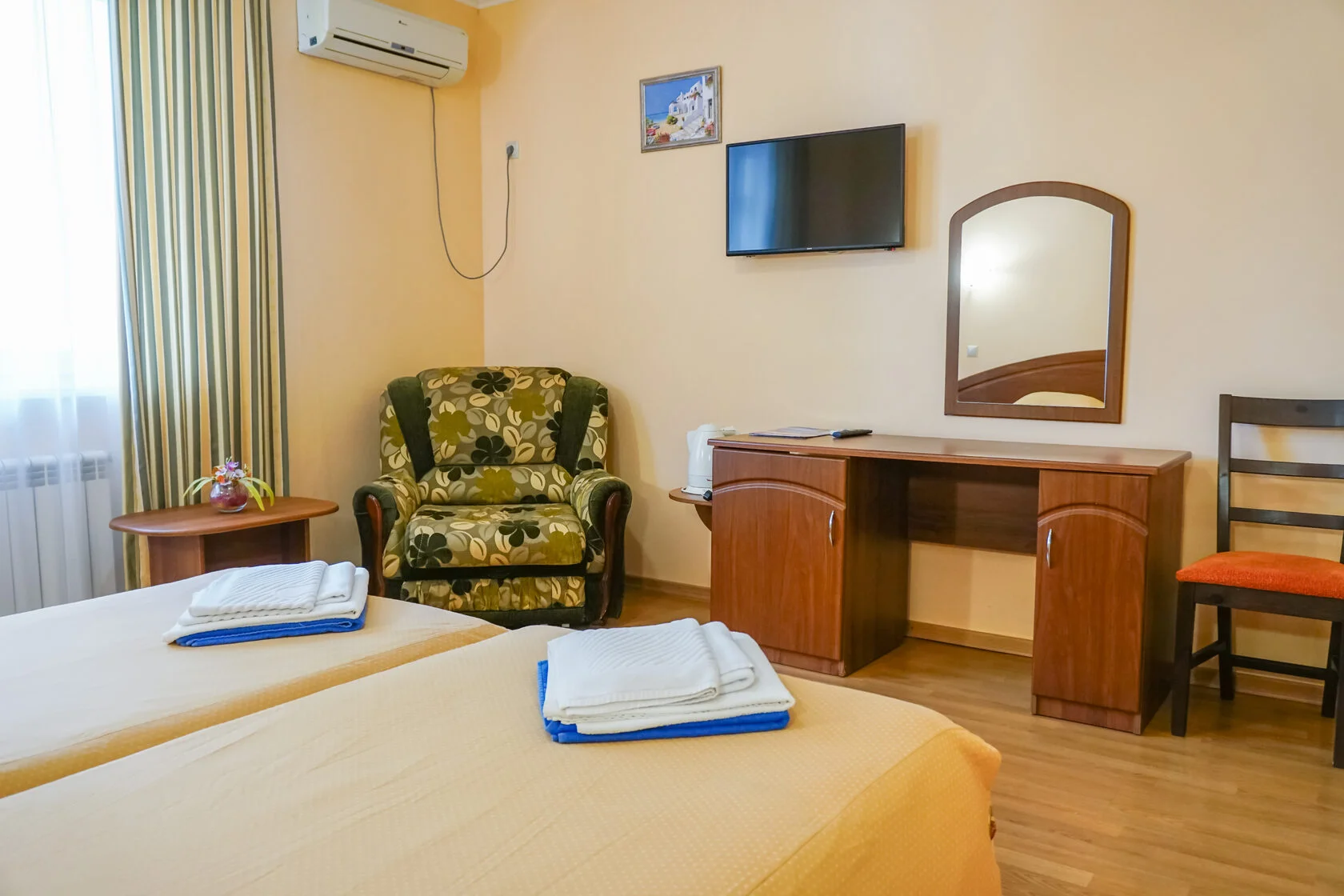 Оборудование: Телевизор, сплит-система, мини-холодильник, микроволновая печь, электрочайник, набор посуды, чай, кофе, питьевая вода, фен.
