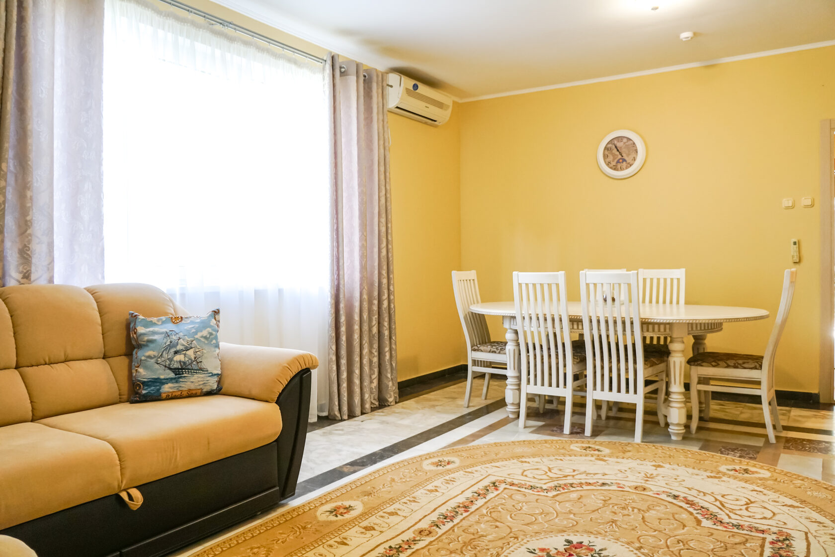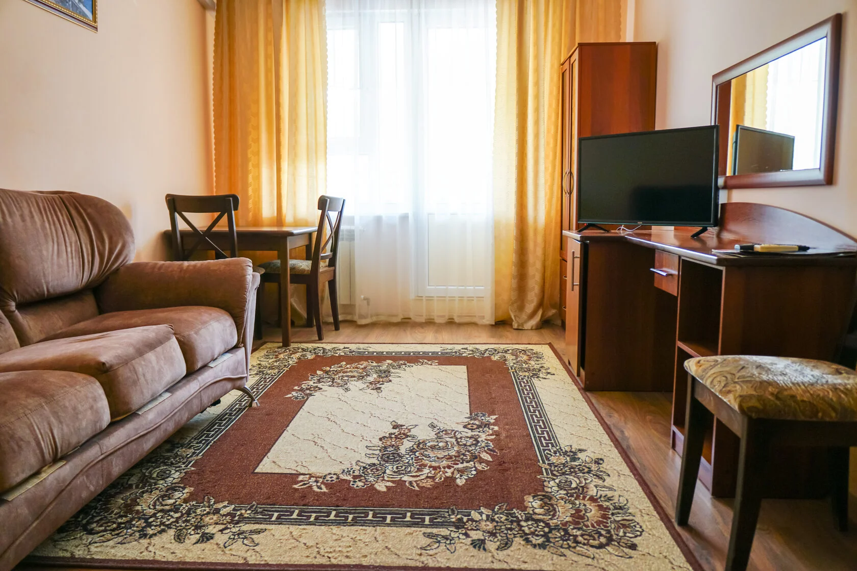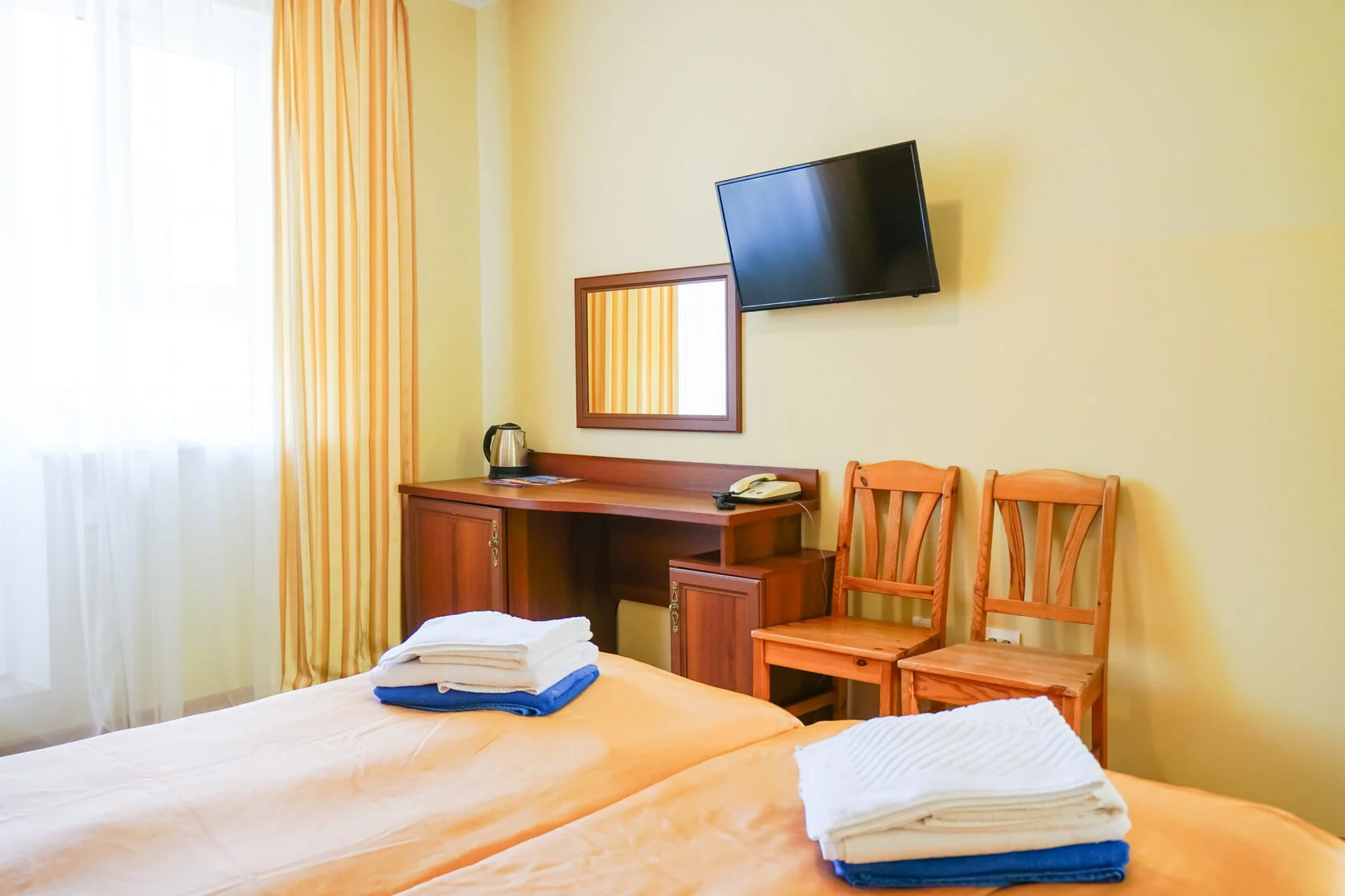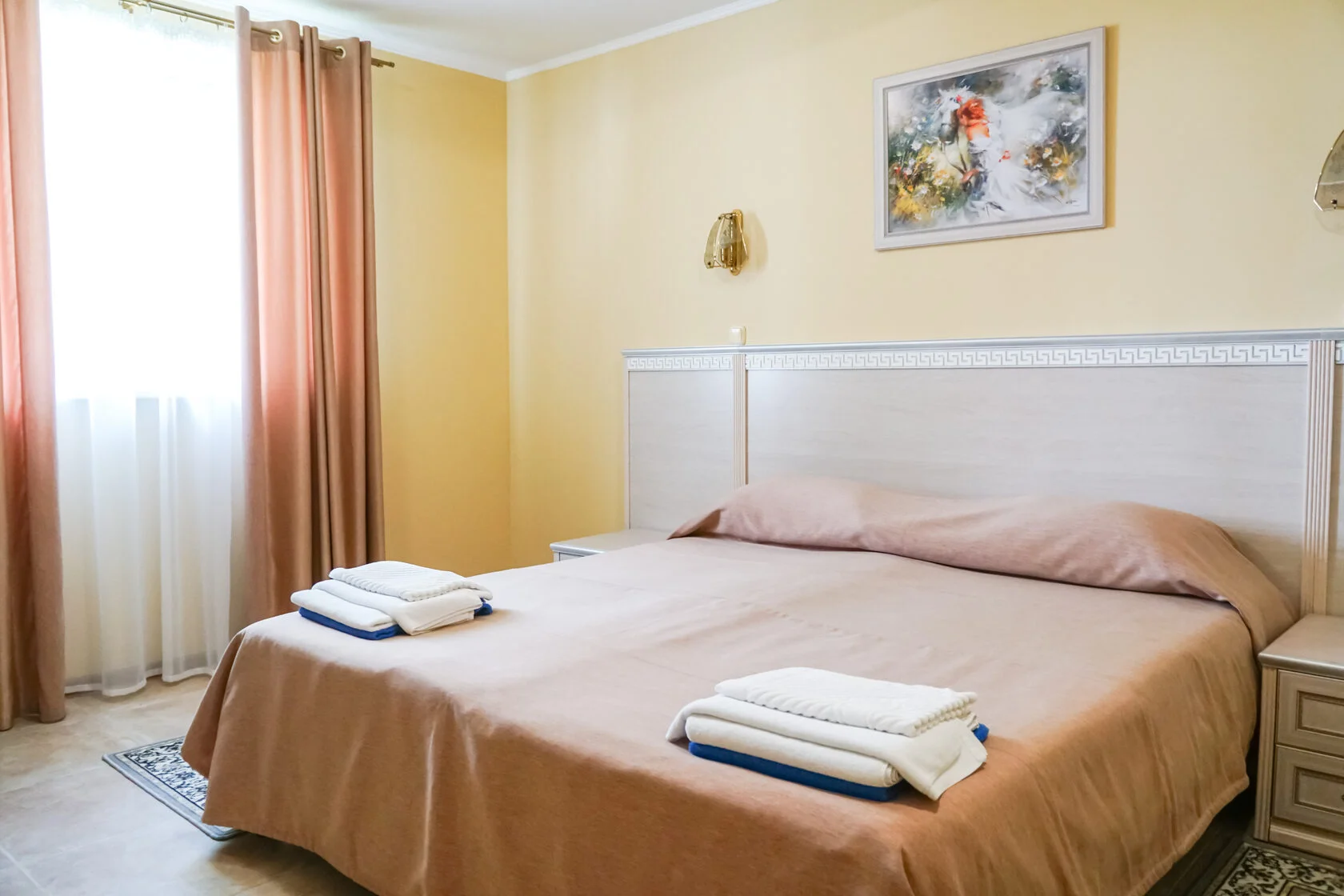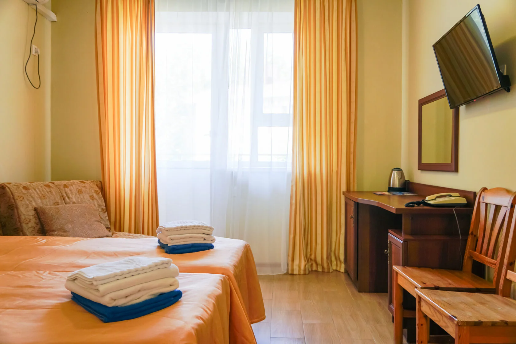 Оборудование: Телевизор, сплит-система, мини-холодильник, микроволновая печь, электрочайник, набор посуды, чай, кофе, питьевая вода, фен.
