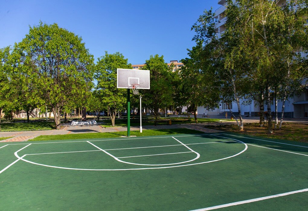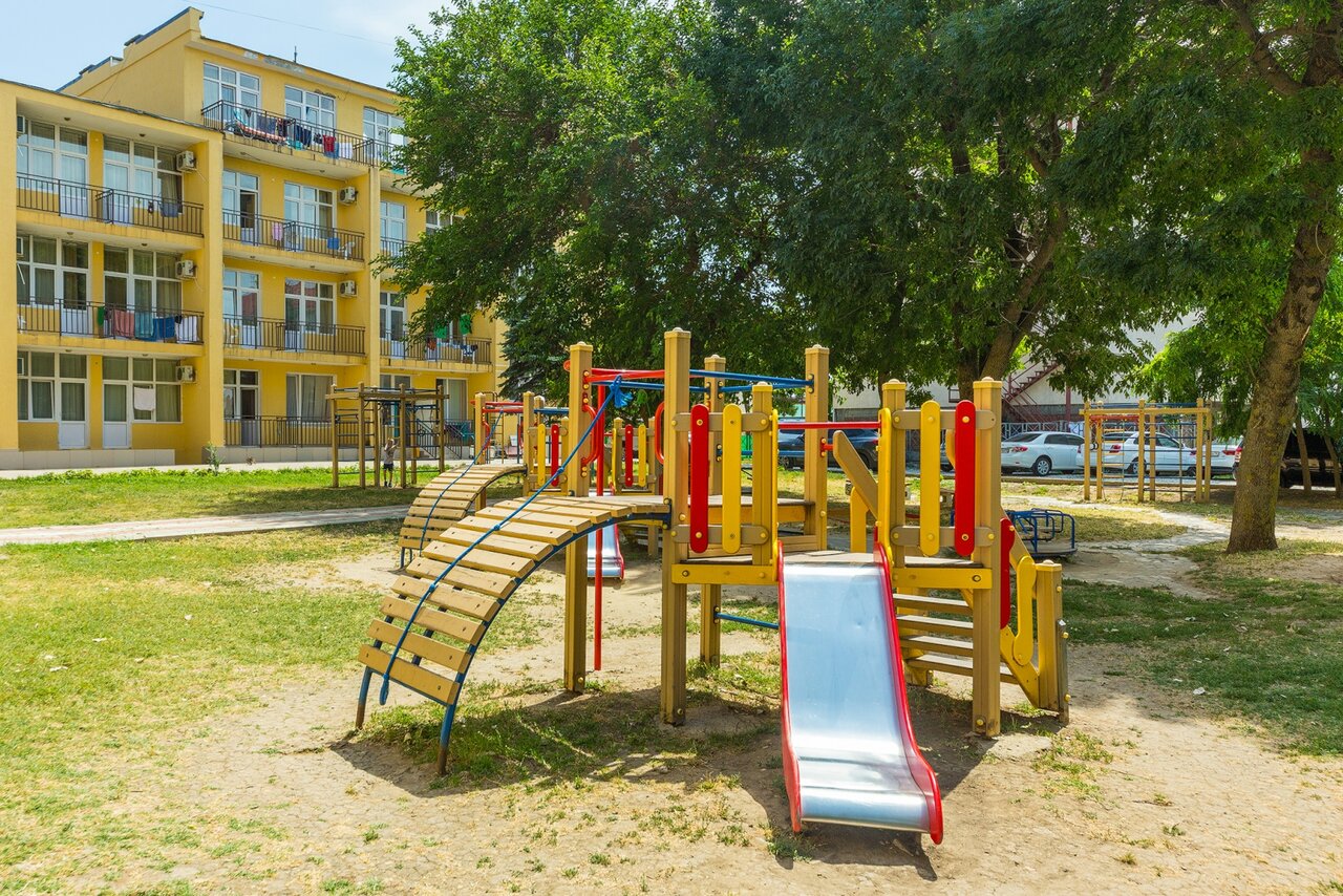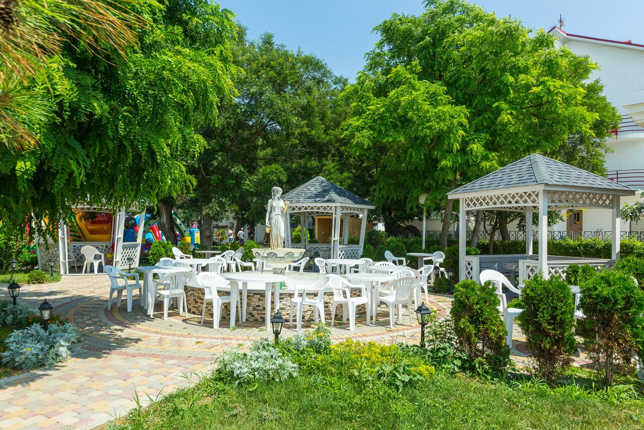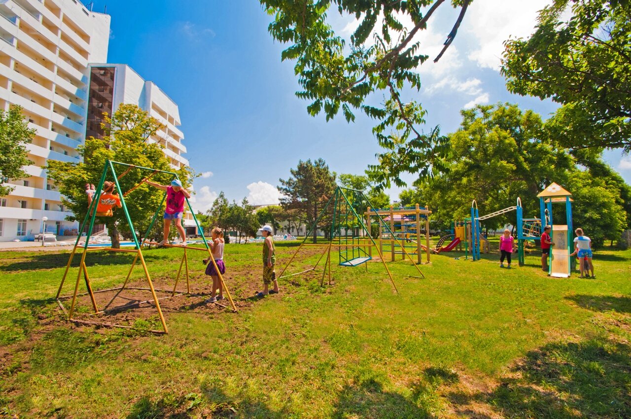 Огороженная территория санатория располагает чудесным парком, нарядными цветниками и газонами, водоемами и фонтанами. На территории есть площадки и прогулочные зоны, уютные уголки, беседки для отдыха, летняя эстрада и кафе.