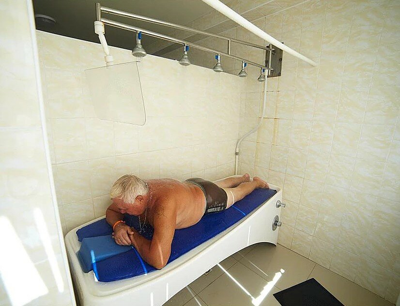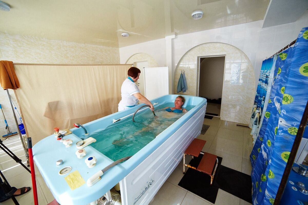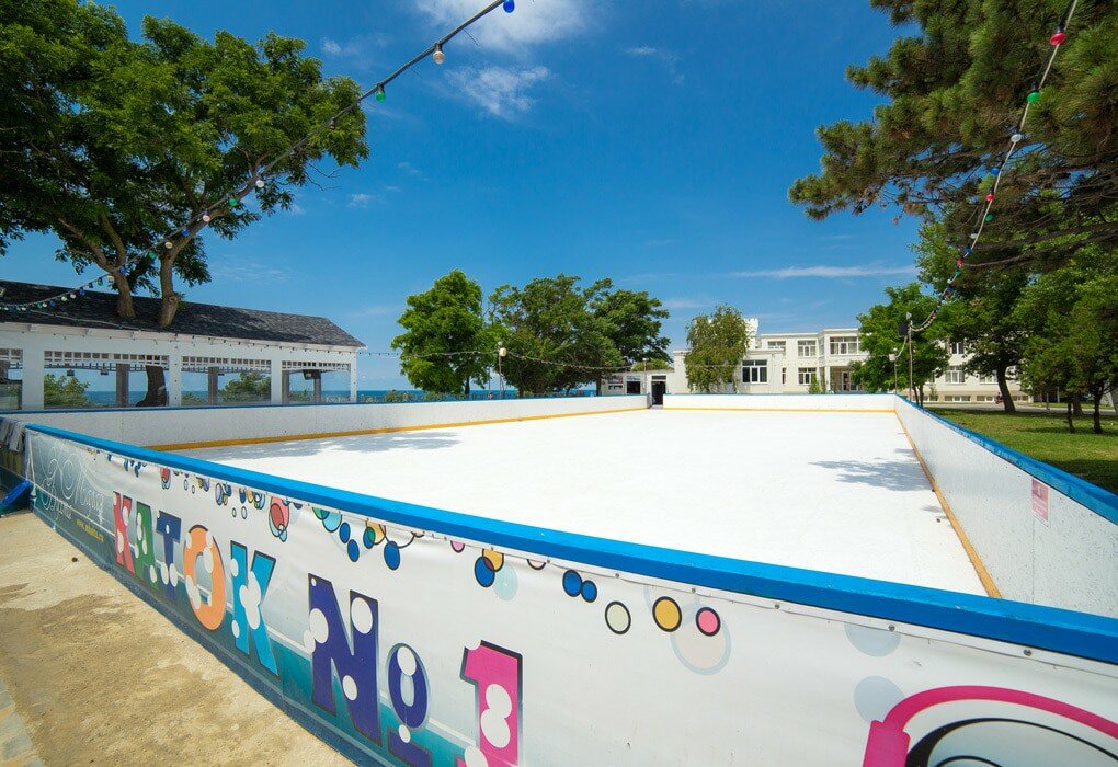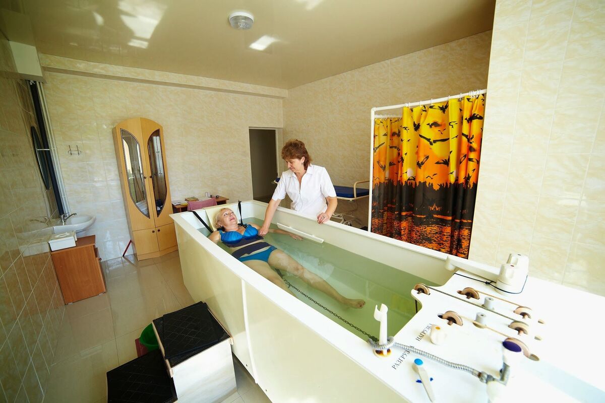 Для гостей санатория функционируют три бассейна с морской водой с зеркалами поверхности 120 кв.м, 65 кв.м, и 40 кв.м, с соответствующими глубинами — 180 см, 150см и 60 см., с взрослым, подростковым и детским отделением, вокруг которого располагается просторная комфортная релакс-зона. Крытый бассейн в 40 кв. м для лечения. Есть уникальный «Зимний пляж» под прозрачным куполом с тремя бассейнами, заполненными морской водой. Три стеклянных стены этого сооружения позволяют загорать зимой. При «Зимнем пляже» работает финская сауна, после которой можно освежиться прямо в море, есть кабинет массажа и практикуются оригинальные SPA-процедуры.