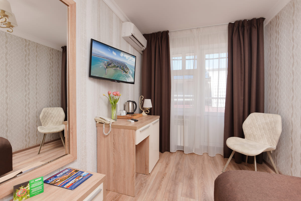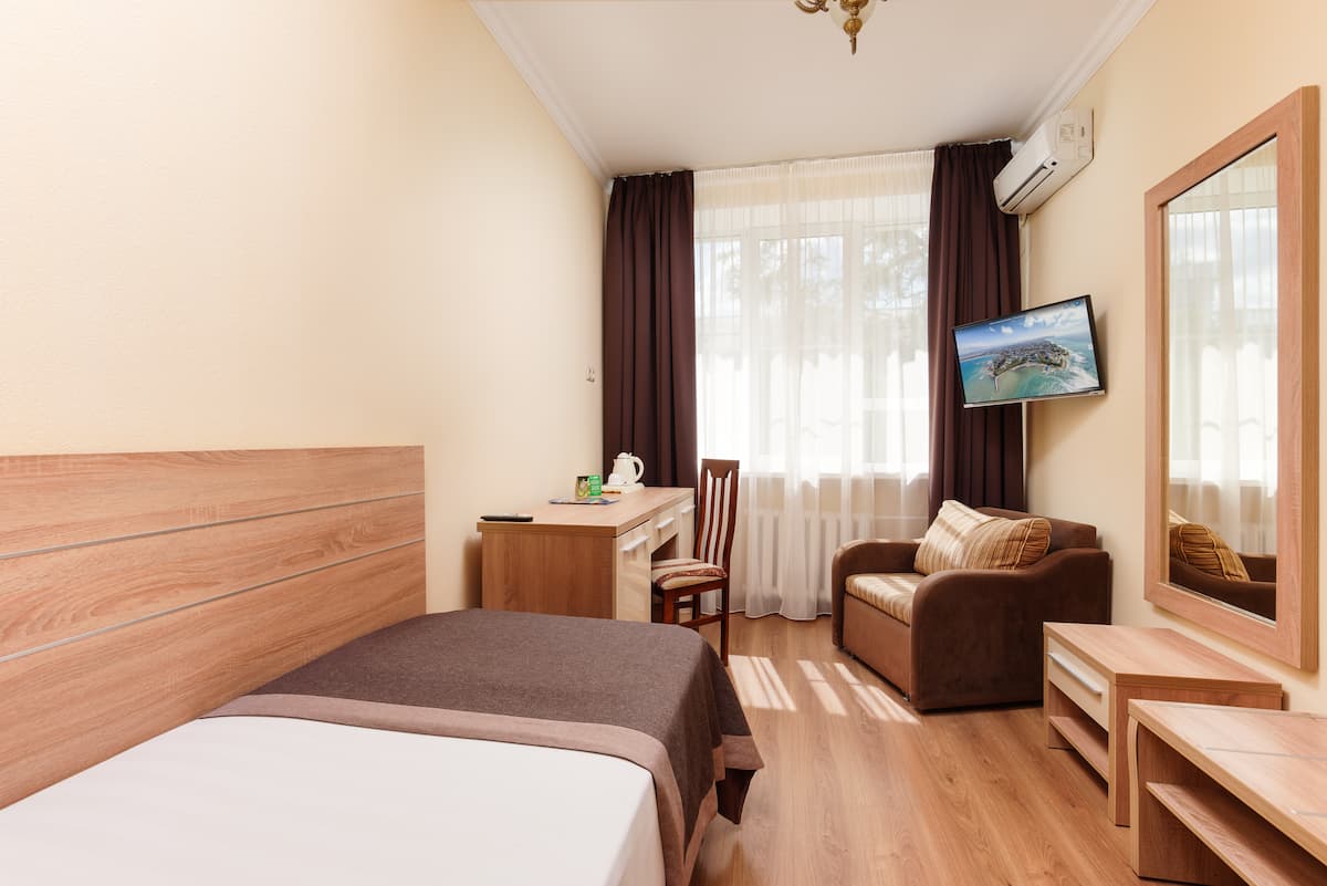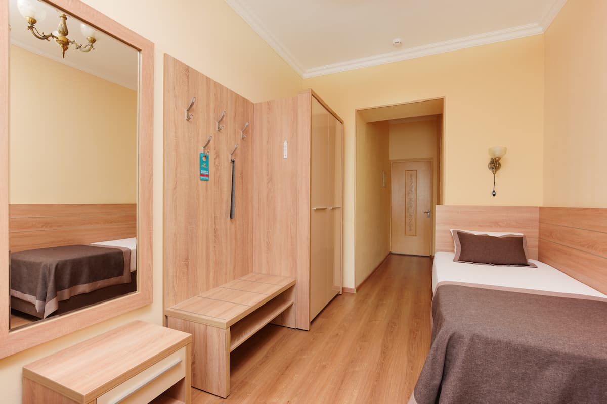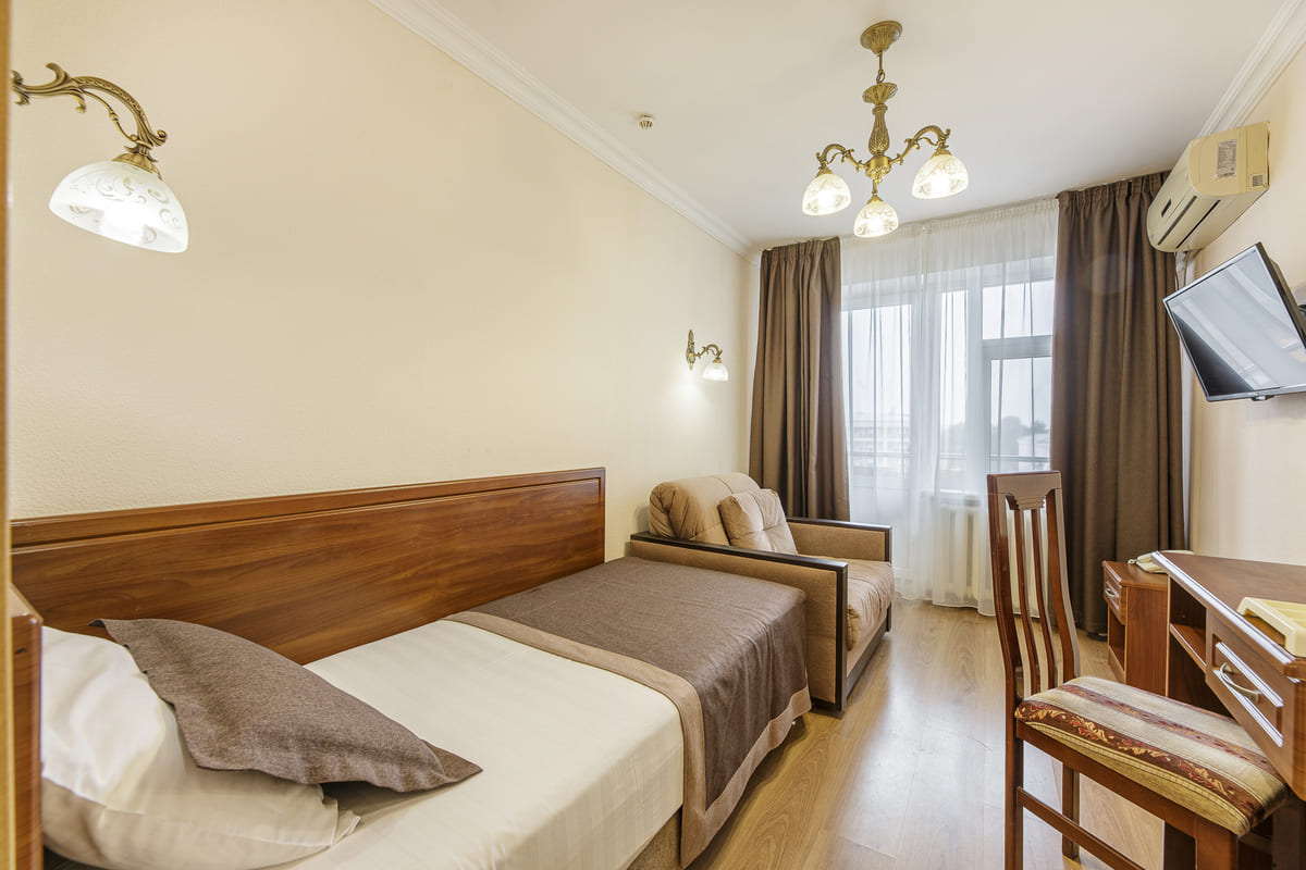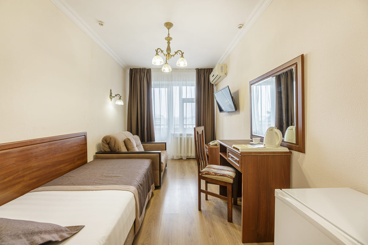 Площадь номера (кв. м.): 20. Мест в номере: 2 (+1 доп.).