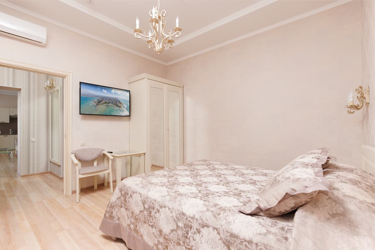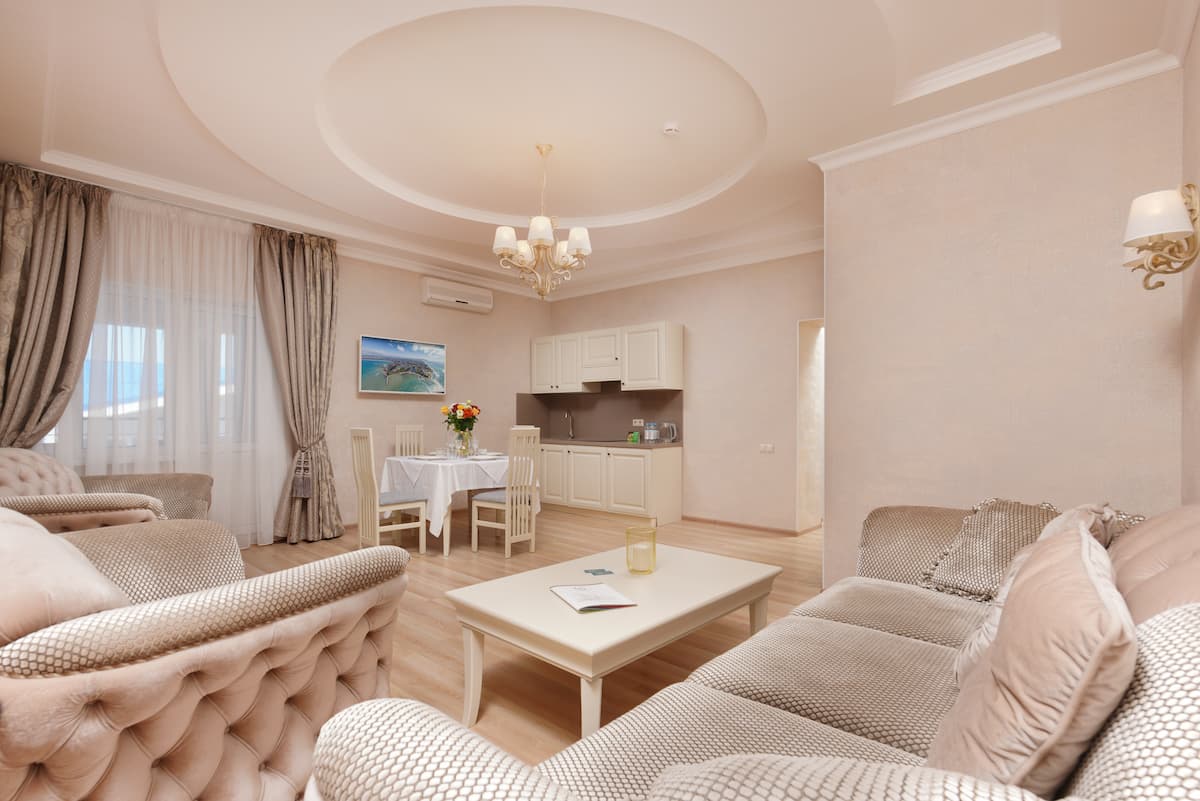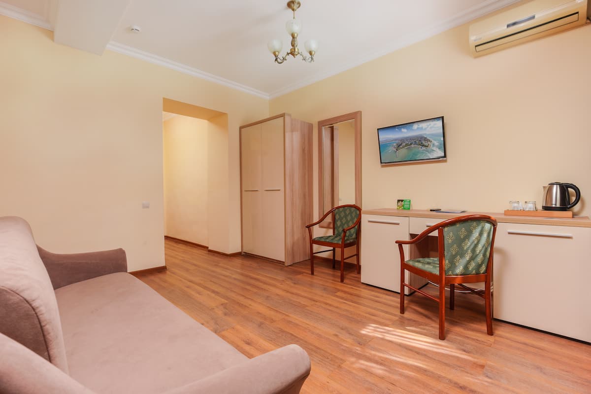 Площадь номера (кв. м.): 70. Мест в номере: 4 (+2 доп.). Балкон: есть. Мини-кухня: есть.