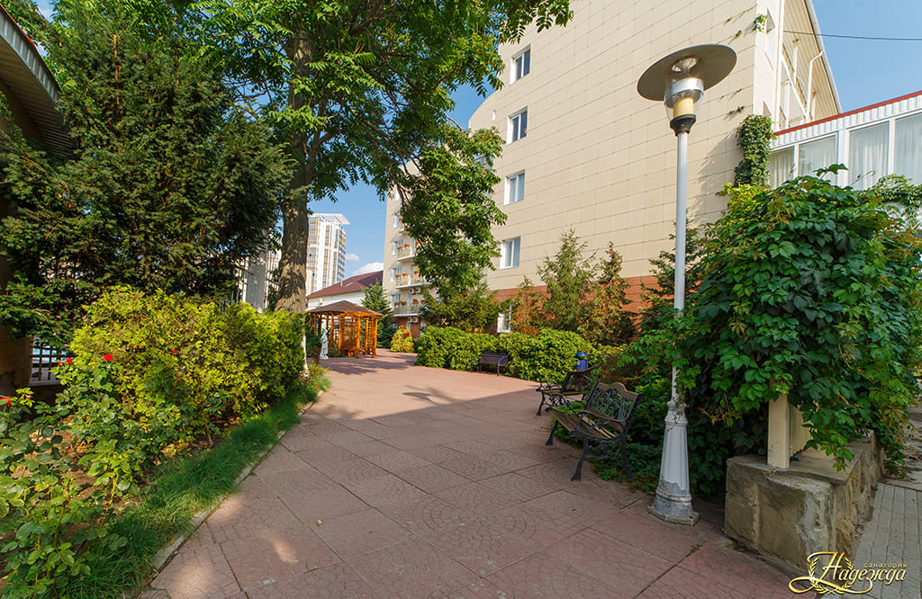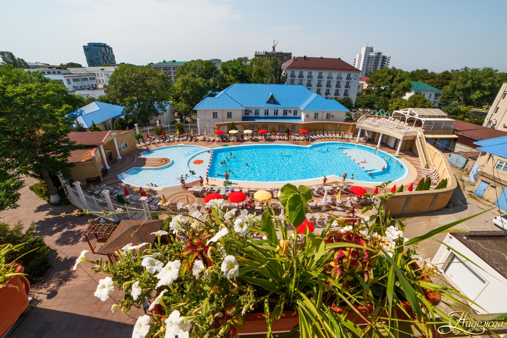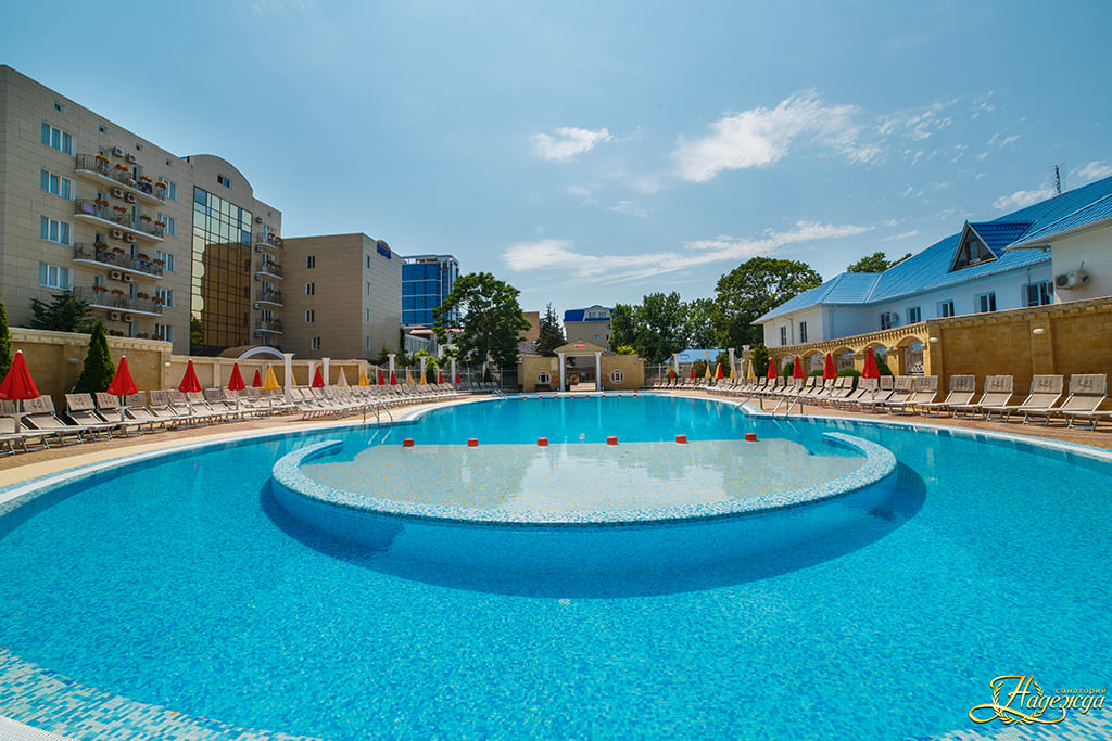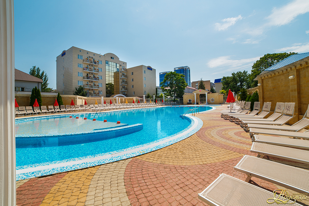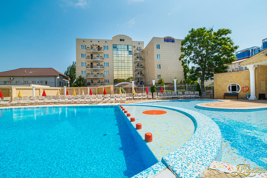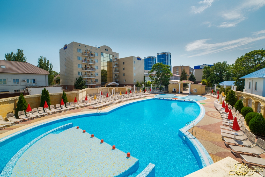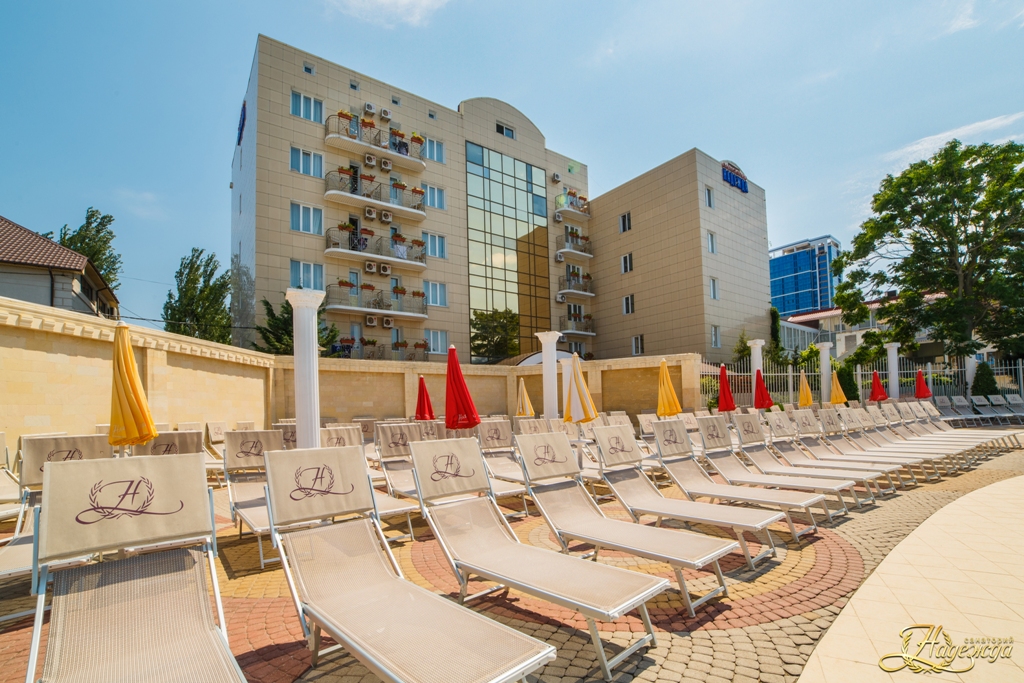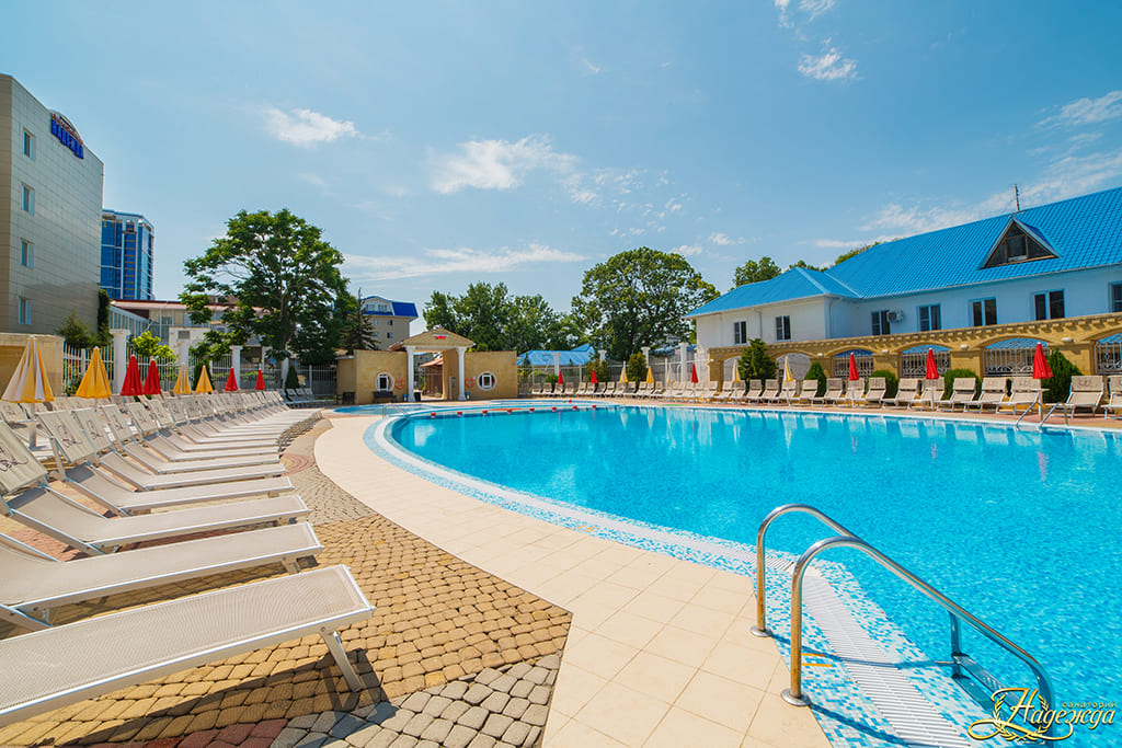 Санаторий «Надежда» – хорошо оснащенный санаторий в самом центре Анапы. Он удостоился 4 звезд и может разместить у себя более 1200 посетителей. В 5 минутах ходьбы находится собственный пляж санатория. Пляжные зоны города расположены в пределах 650 м.