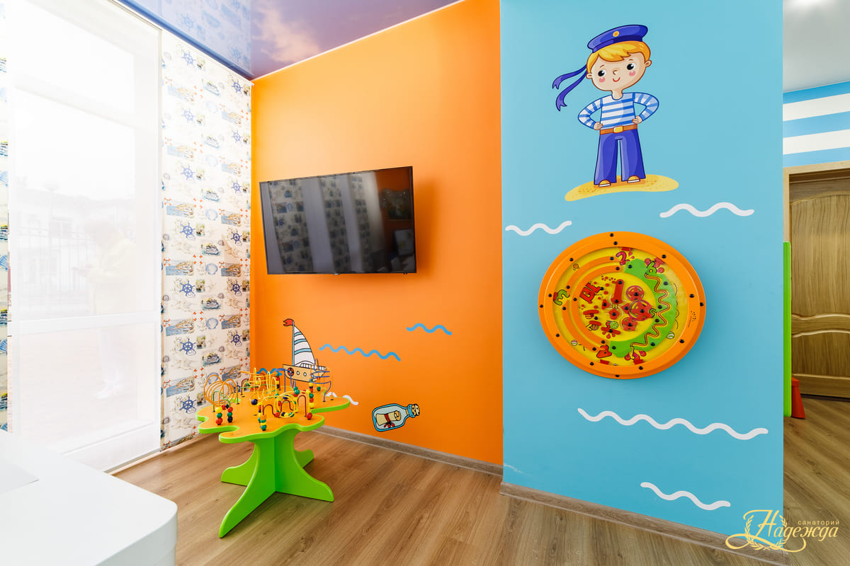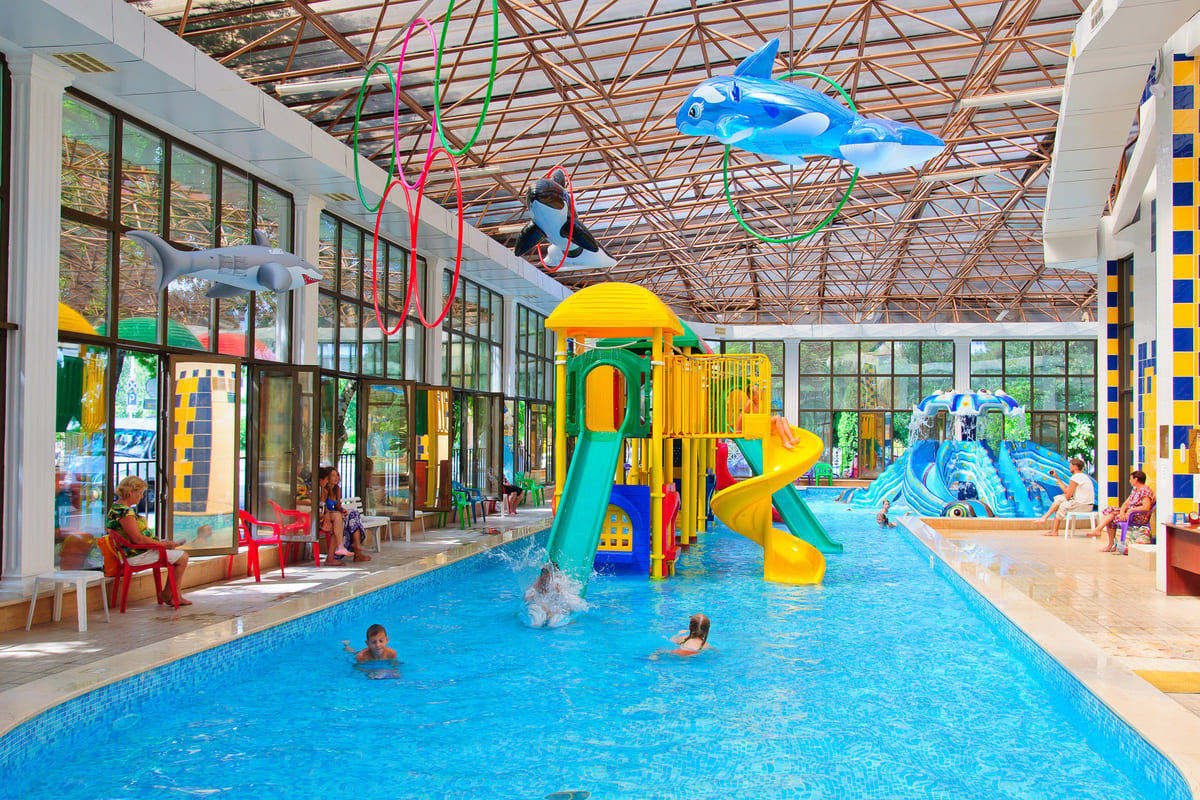 Для детской аудитории организованы игровые площадки, горка, комната для настольных игр, специальные зоны в бассейнах и даже небольшой аквапарк «Осьминожка».