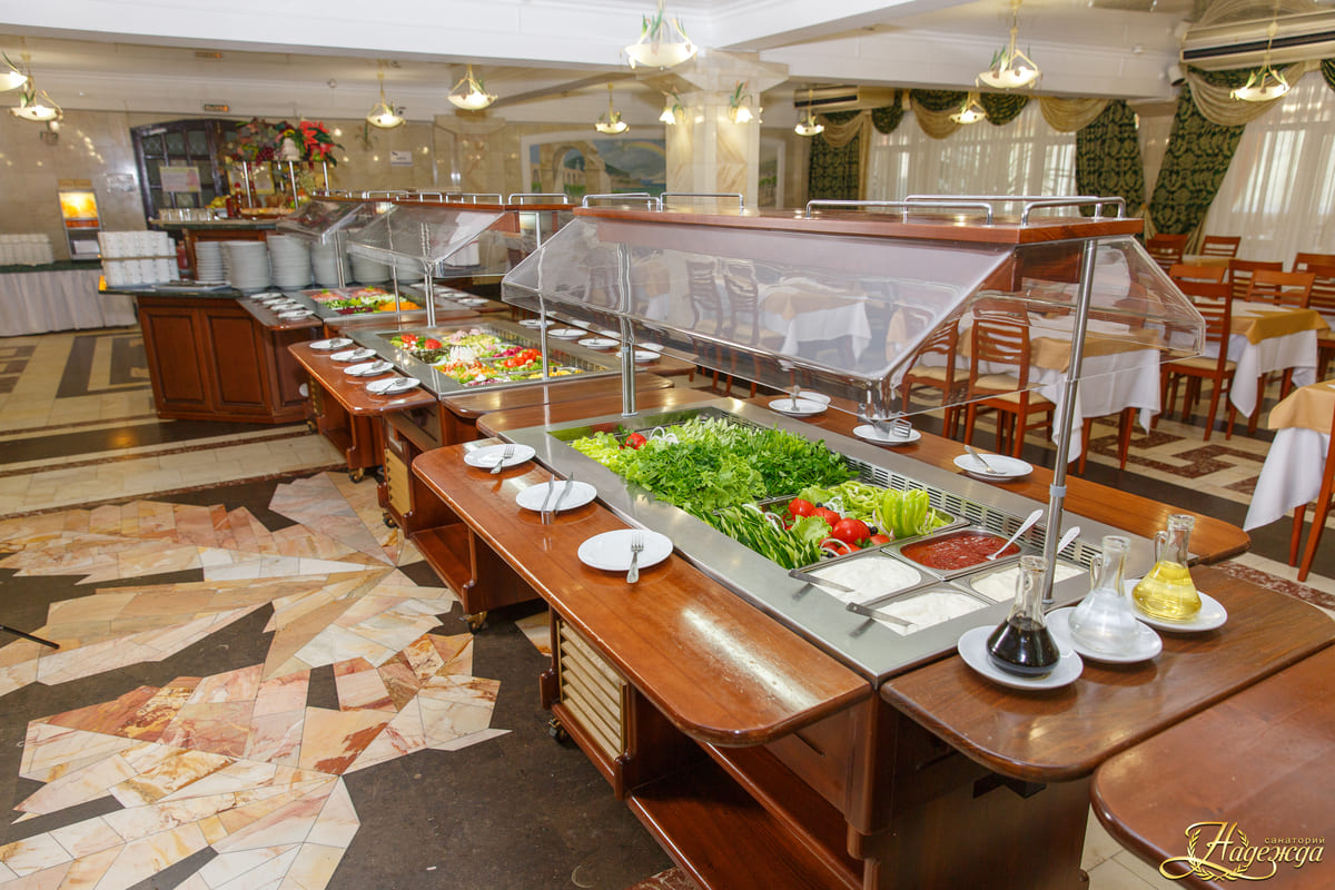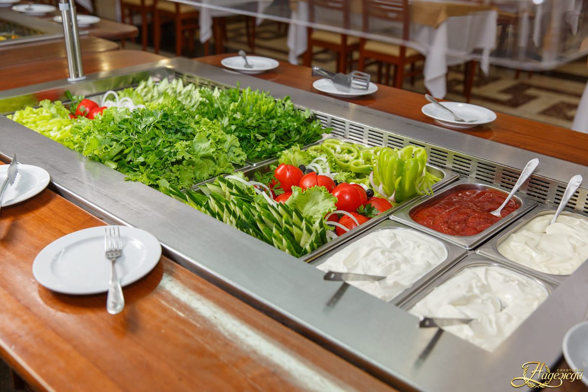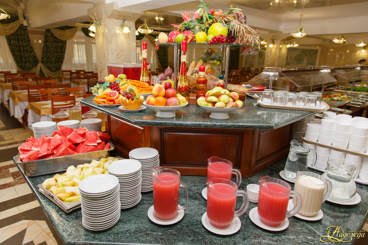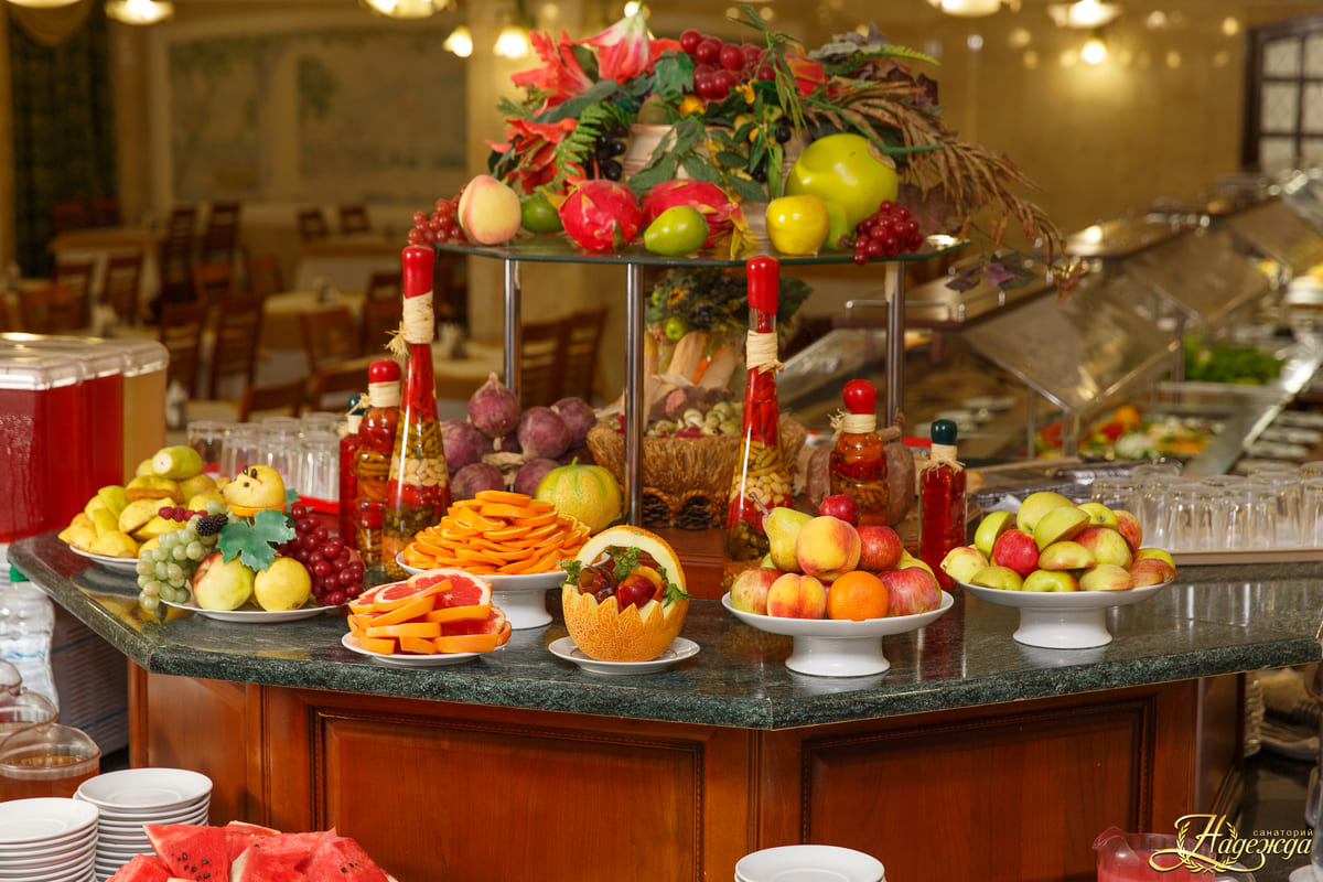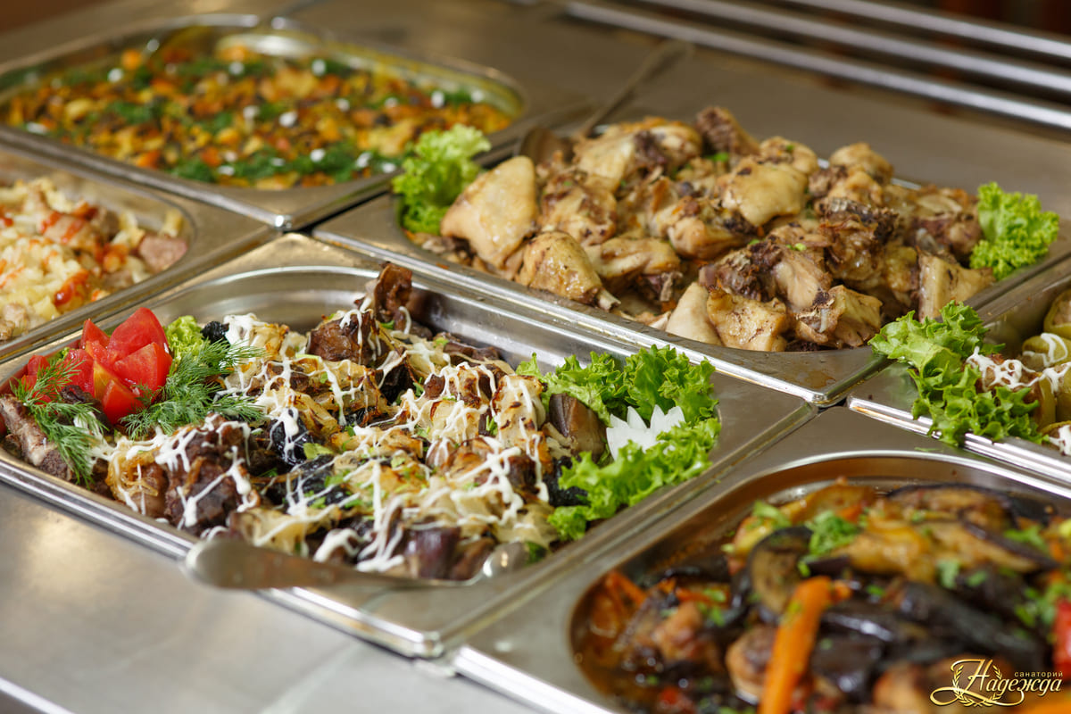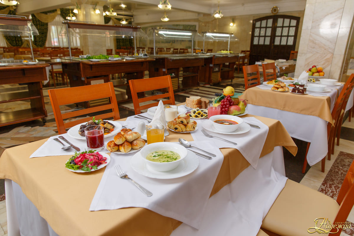 На территории комплекса функционирует столовая с 3-разовым питанием — завтрак, обед, ужин. Для детей разработано особое меню.