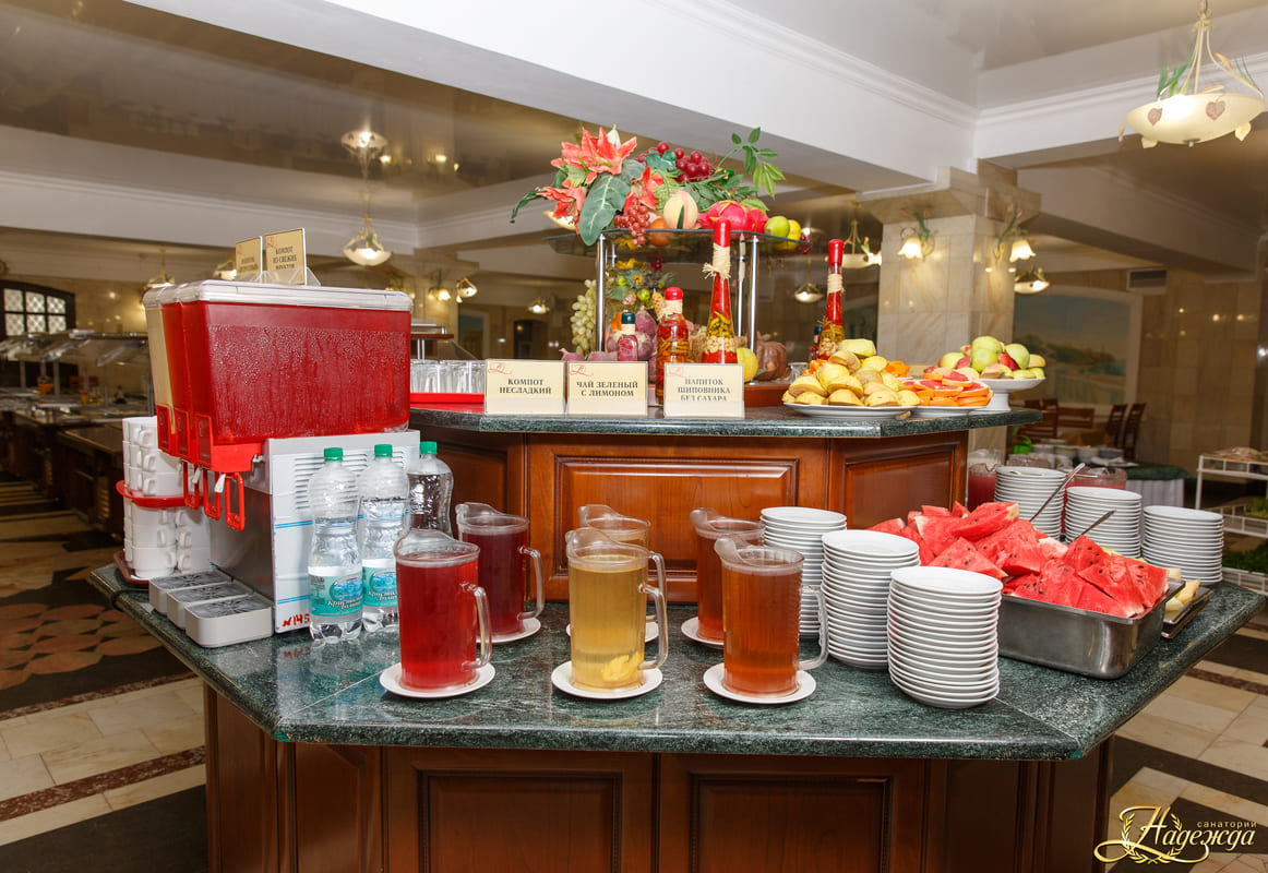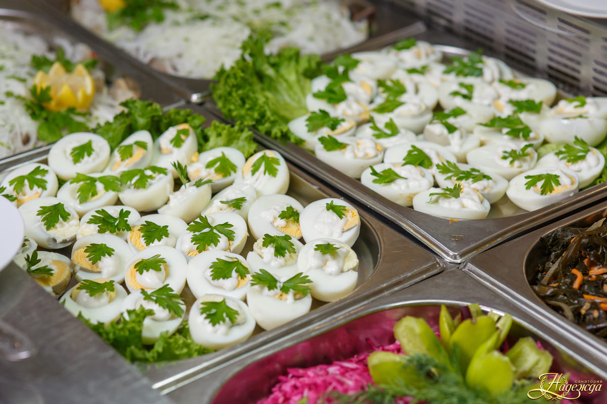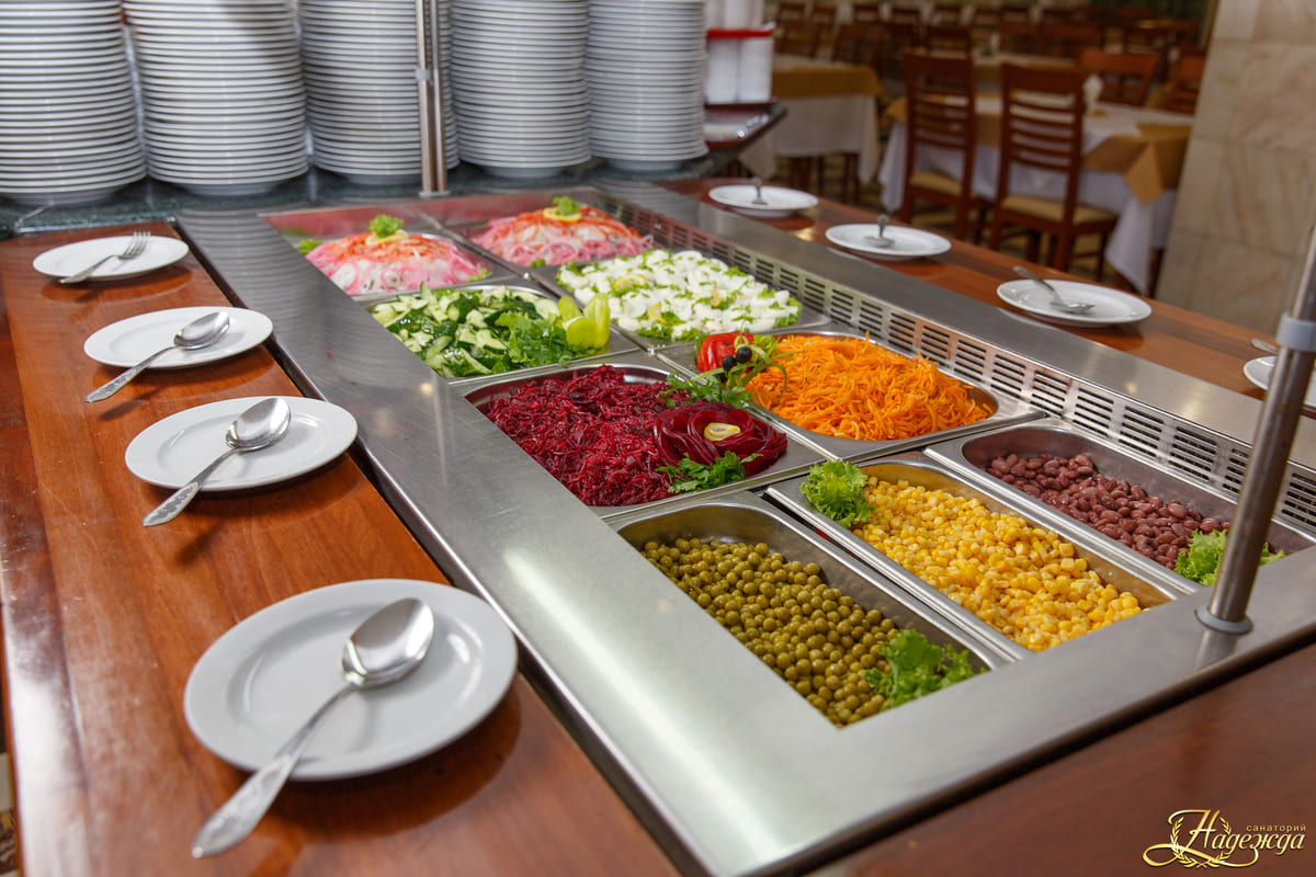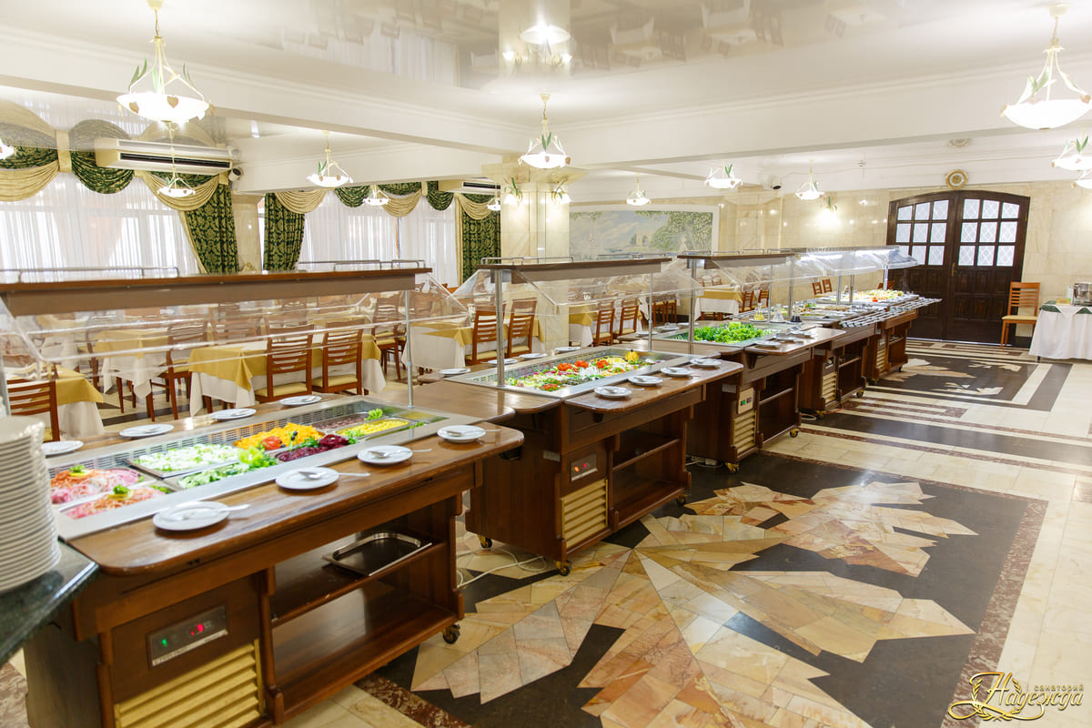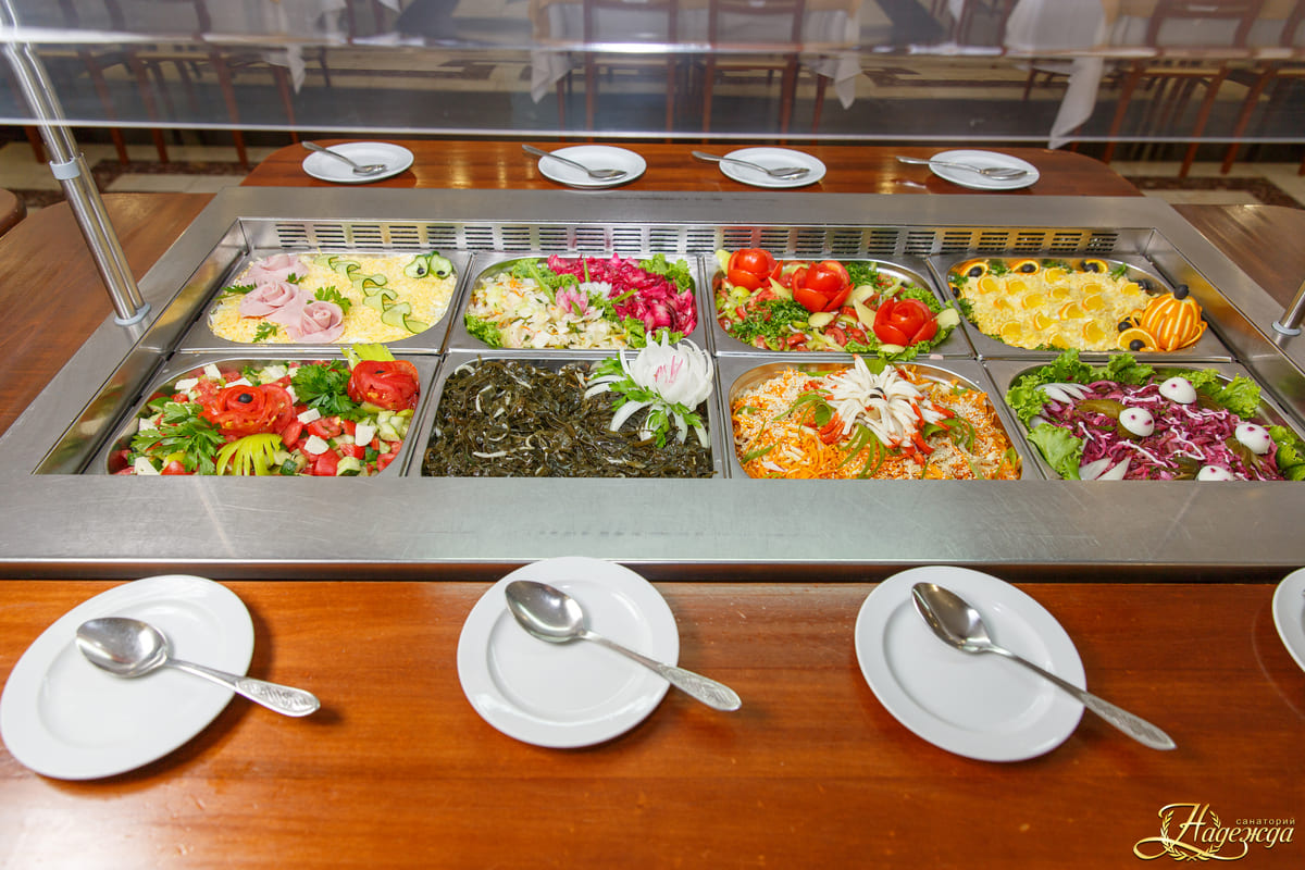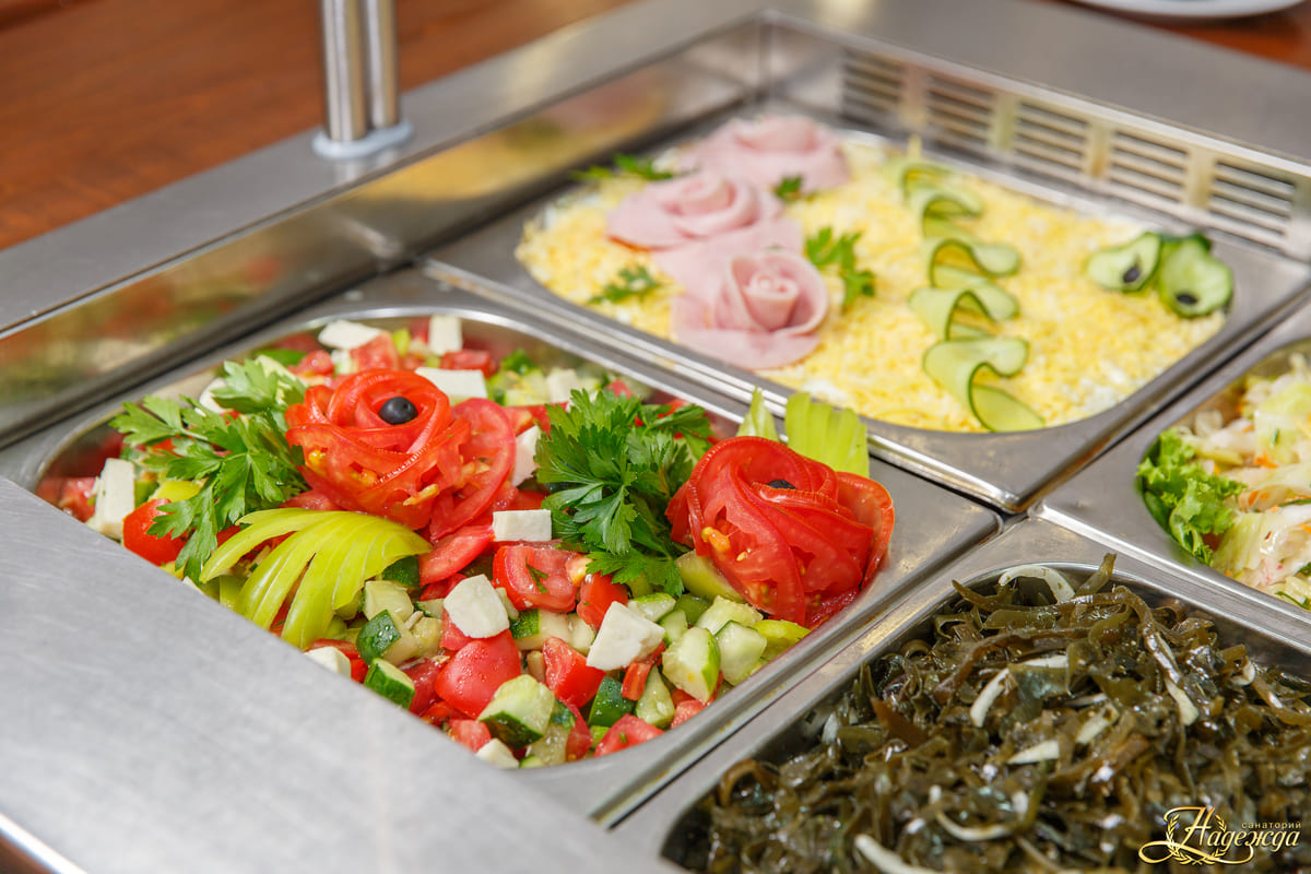 На территории комплекса функционирует столовая с 3-разовым питанием — завтрак, обед, ужин. Для детей разработано особое меню.