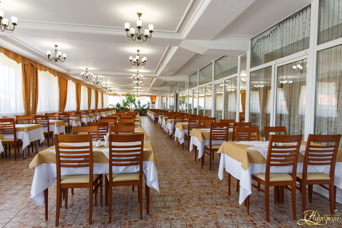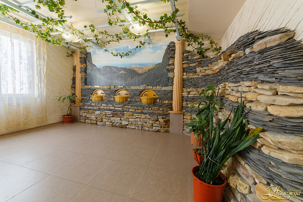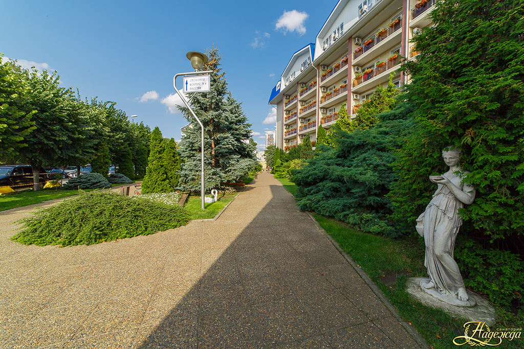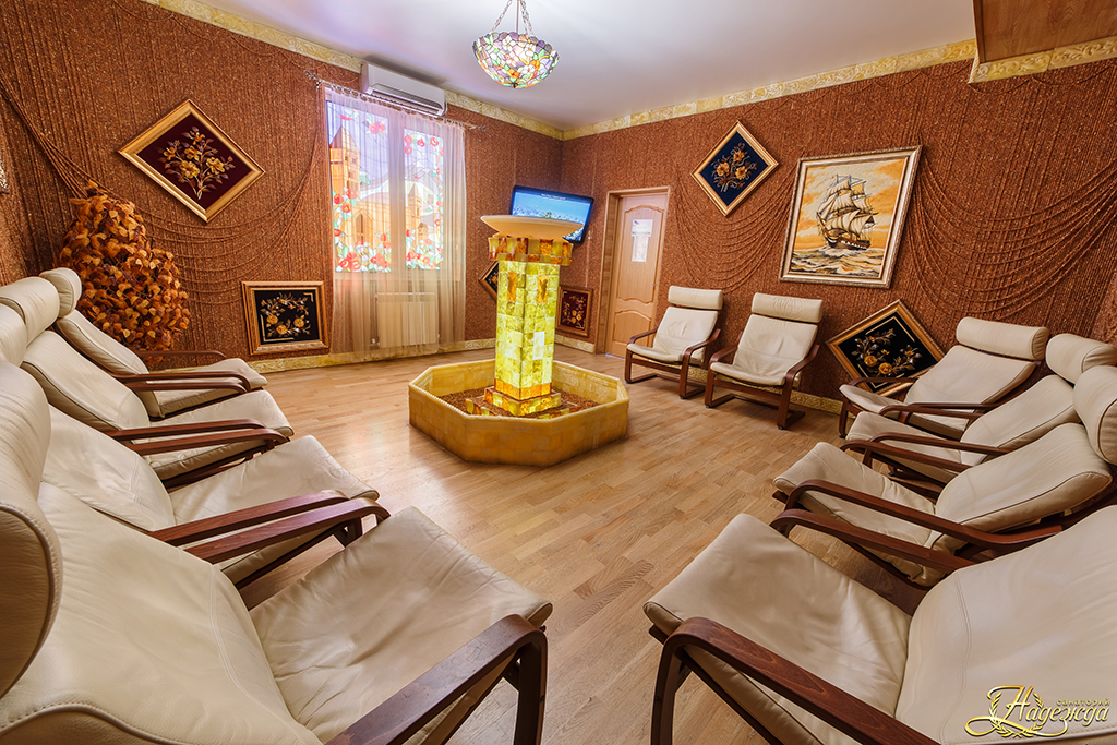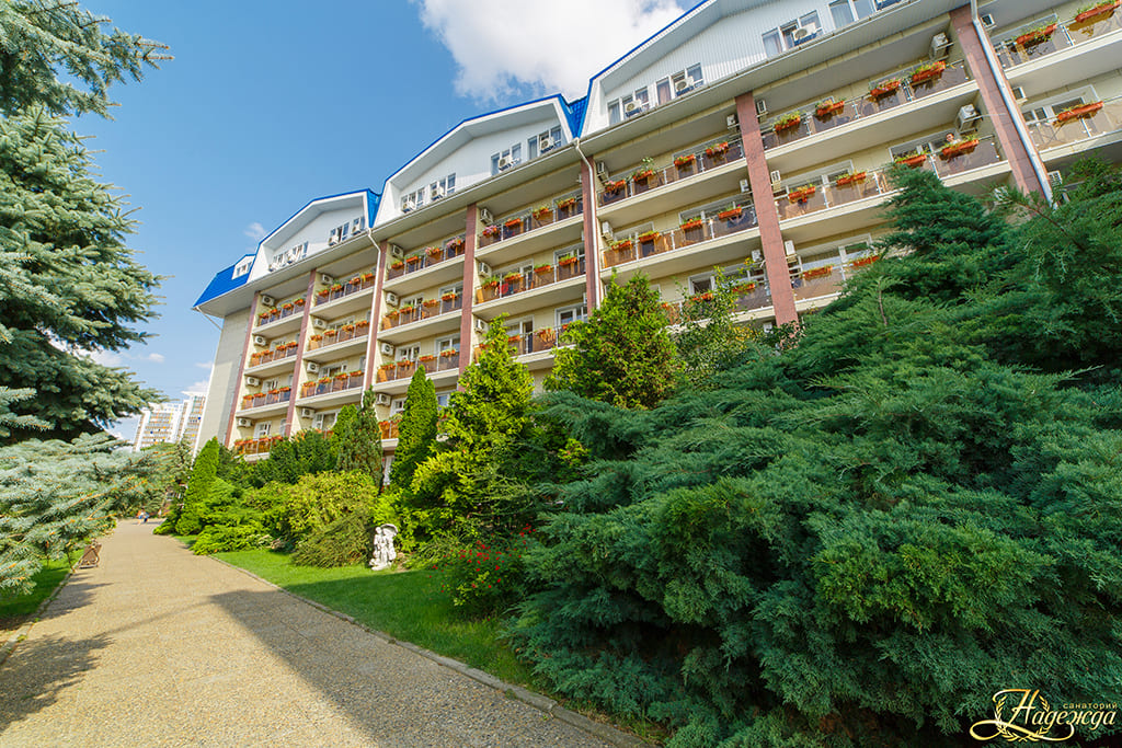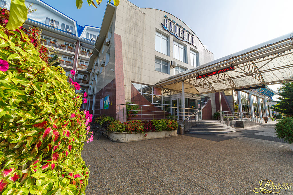 «Надежда» специализируется на диагностике и лечении заболеваний опорно-двигательной, сердечно-сосудистой, дыхательной, гормональной и половой систем, а также проблемах кожи. Здесь отпускаются физиотерапевтические процедуры, ингаляции, водные процедуры с использованием минеральной воды, лечение грязями, массаж, ЛФК.