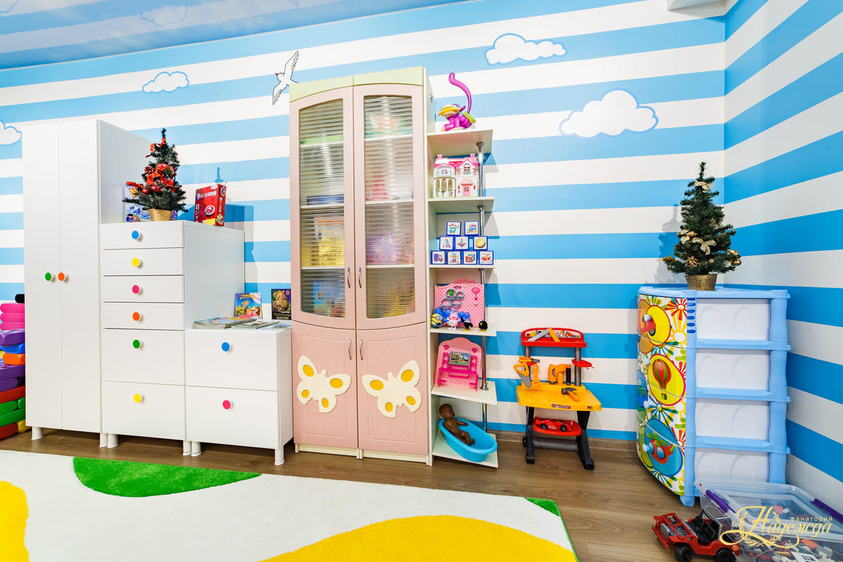Мебель: вешалка, зеркало, кресло-кровать, кровать односпальная, прикроватная тумбочка, стол, стул, шкаф.