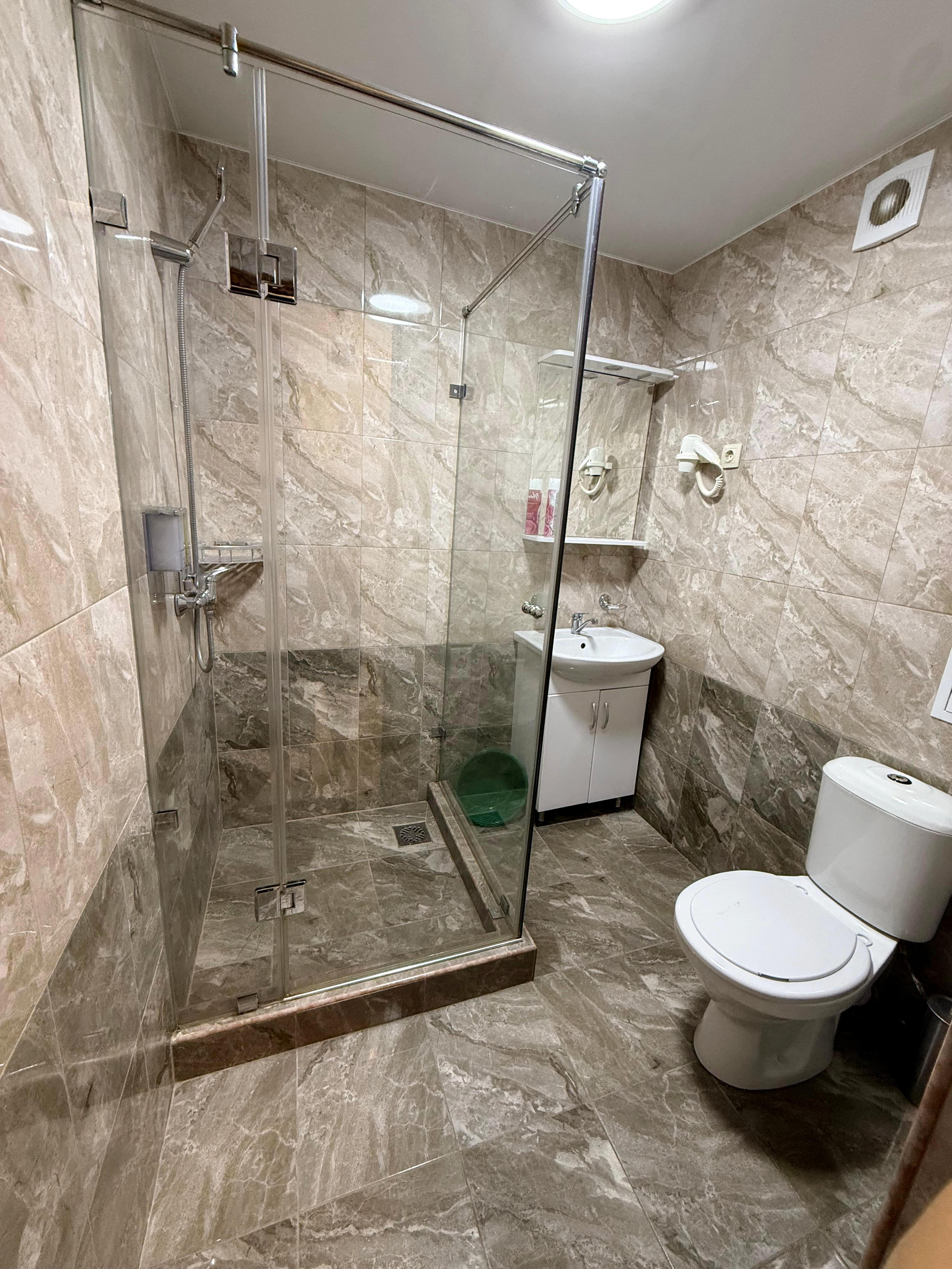 Санузел: с душевой кабиной, туалетные принадлежности.