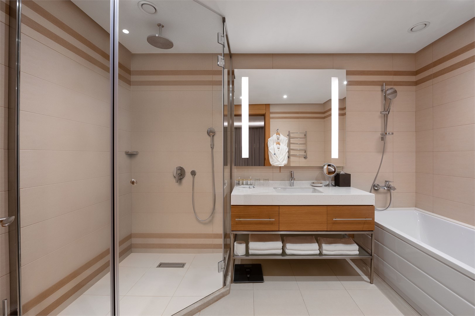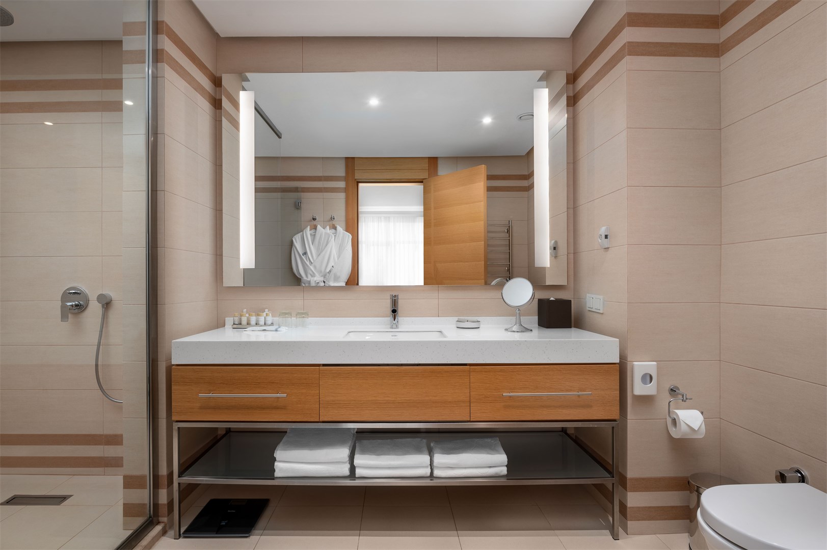 Номера комфортные и все продумано, дизайн в спокойных тонах, очень нравится душевая кабина- просторная и удобная.