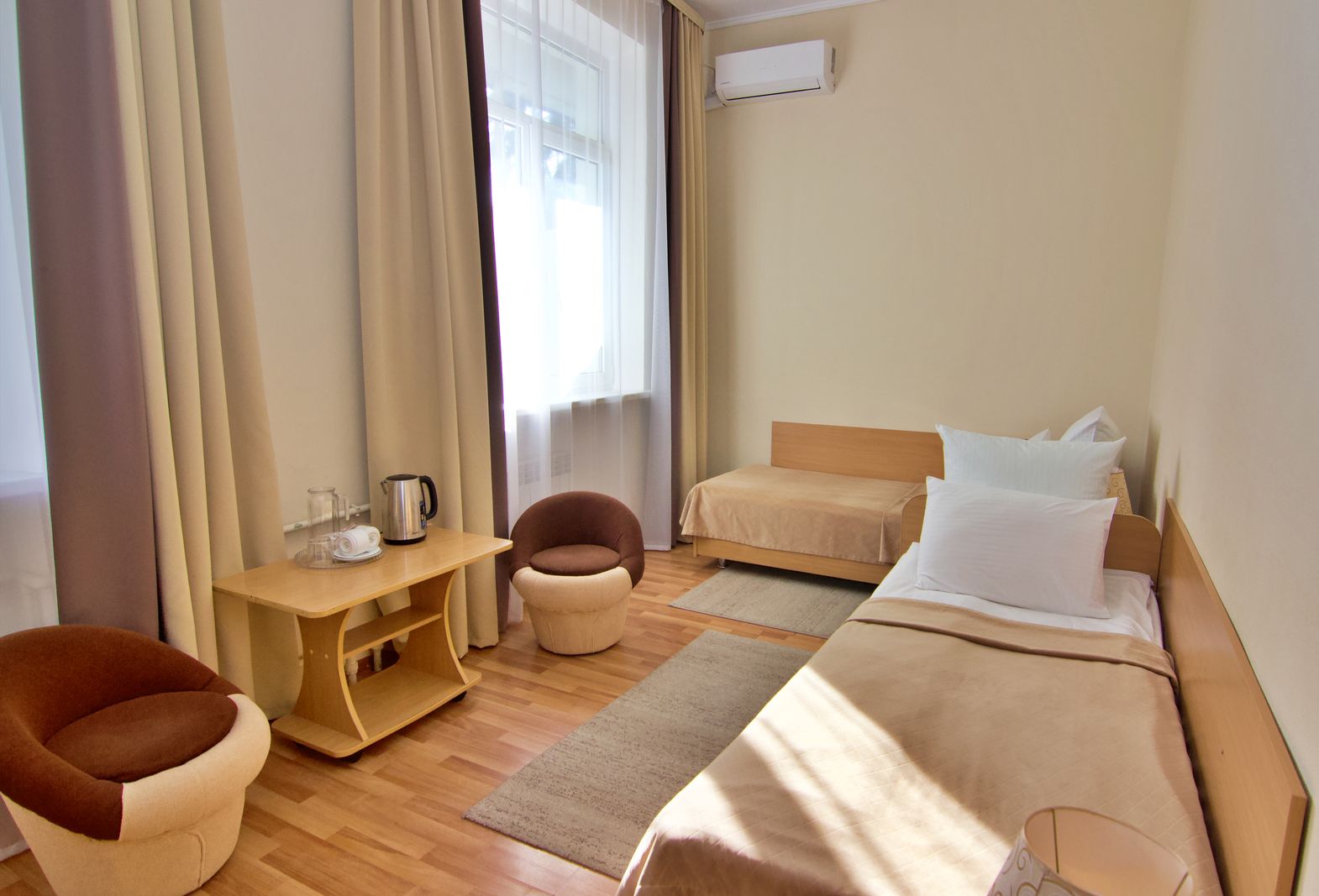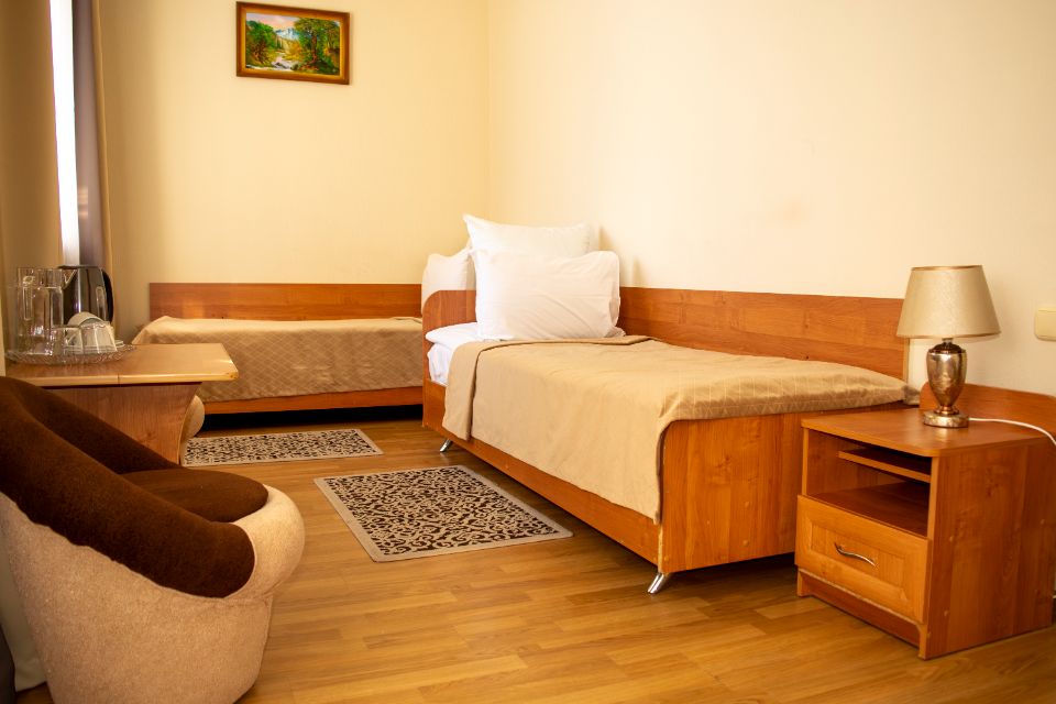 Сервис: Wi-Fi доступ в интернет, телефон, гостиничная парфюмерия, тапочки, халат.