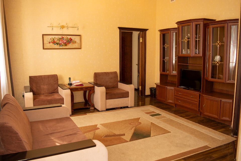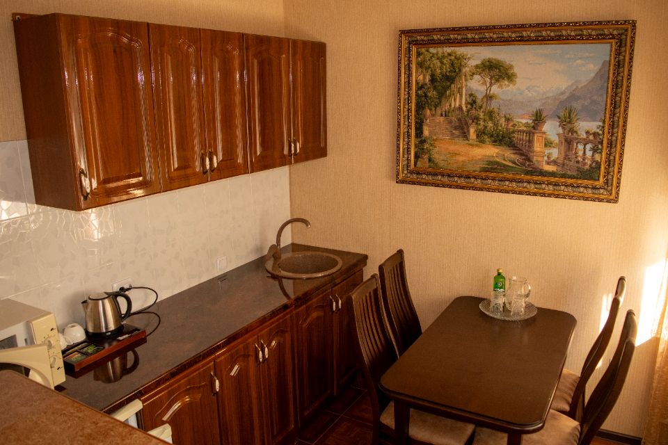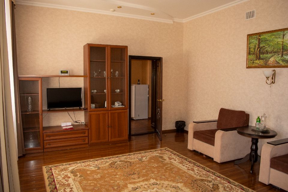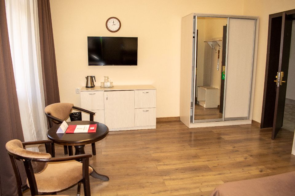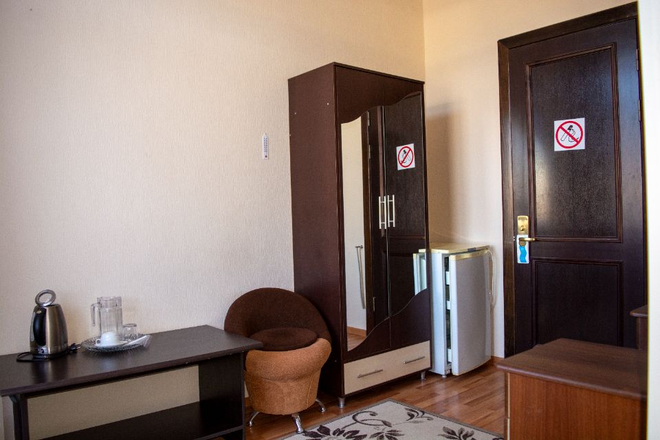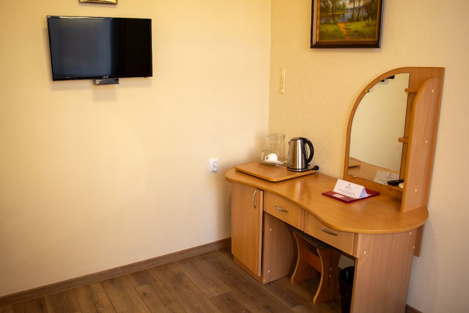 Оборудование: LED-телевизор, мини-холодильник, электрочайник и набор посуды, индивидуальная система кондиционирования воздуха.