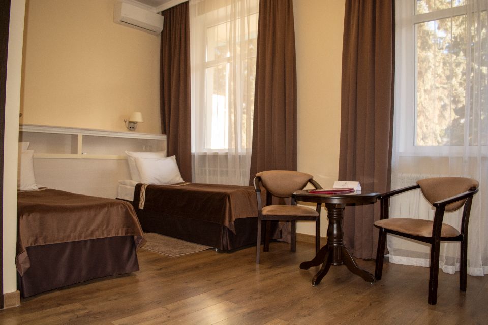 Отдыхали в санатории с 25 ноября по 15 декабря 2019г., 4 человека, я с мужем и дочь с внучкой 2 года. Нас разместили в 2 номера категории стандарт на одном этаже. Номера уютные, теплые, чистые, но в нашем номере пахло куревом, проветривание и духи спасли ситуацию.