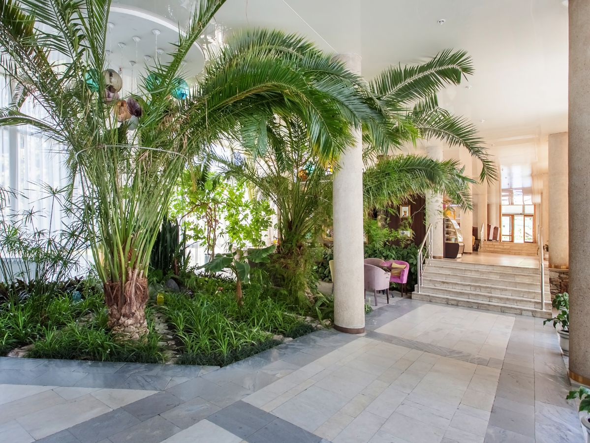 В санатории есть библиотека, детская игровая комната, прекрасный большой бассейн с теплой водой 28°, каждый вечер концертная программа и дискотека. Организован питьевой бювет около роскошного зимнего сада.