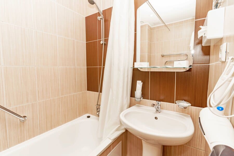 Санузел: с душем, тапочки, туалетные принадлежности, фен, халат.