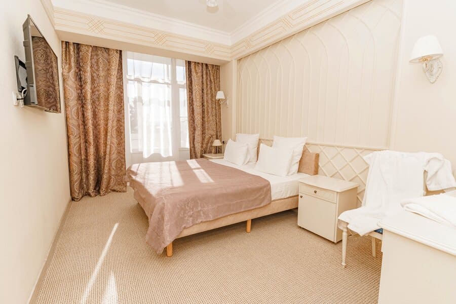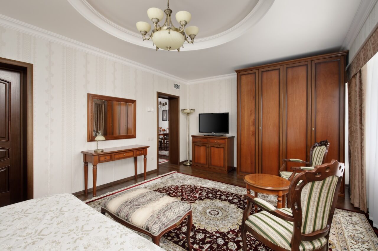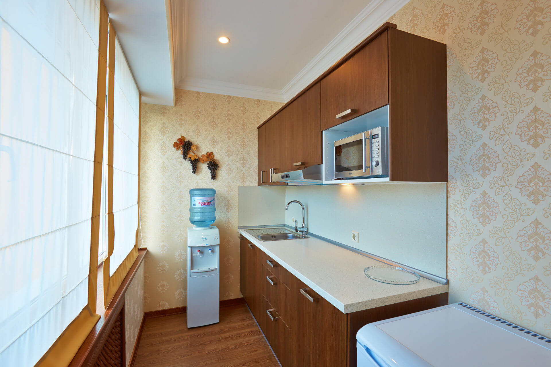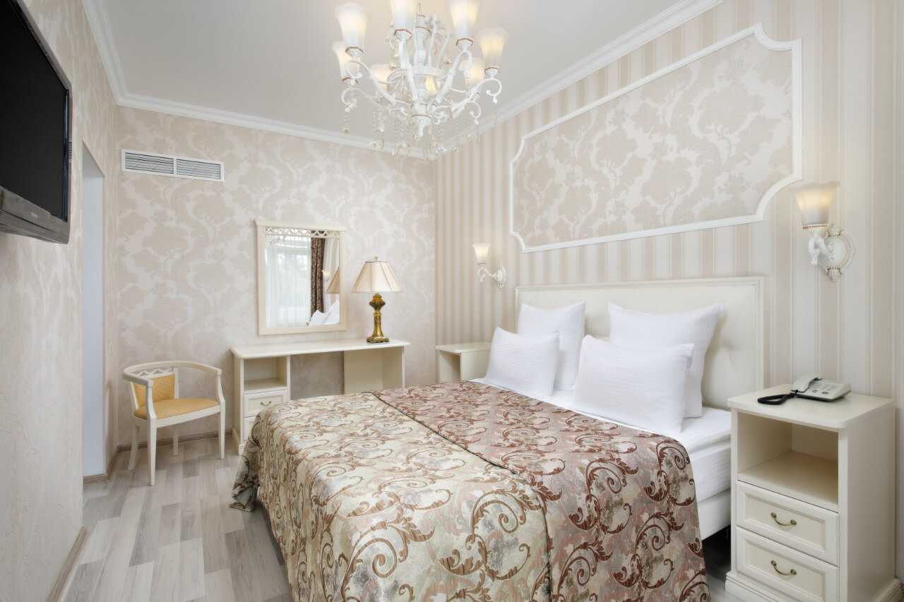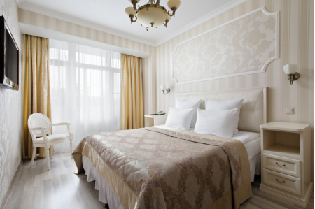 Оборудование: кондиционер, сейф, система общего кондиционирования, телевизор, телефон, холодильник, чайный набор посуды, электрочайник.