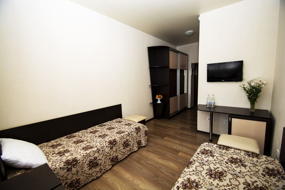 Мебель: Две односпальные кровати, тумба прикроватная, тумба TV, стенной шкаф для одежды.