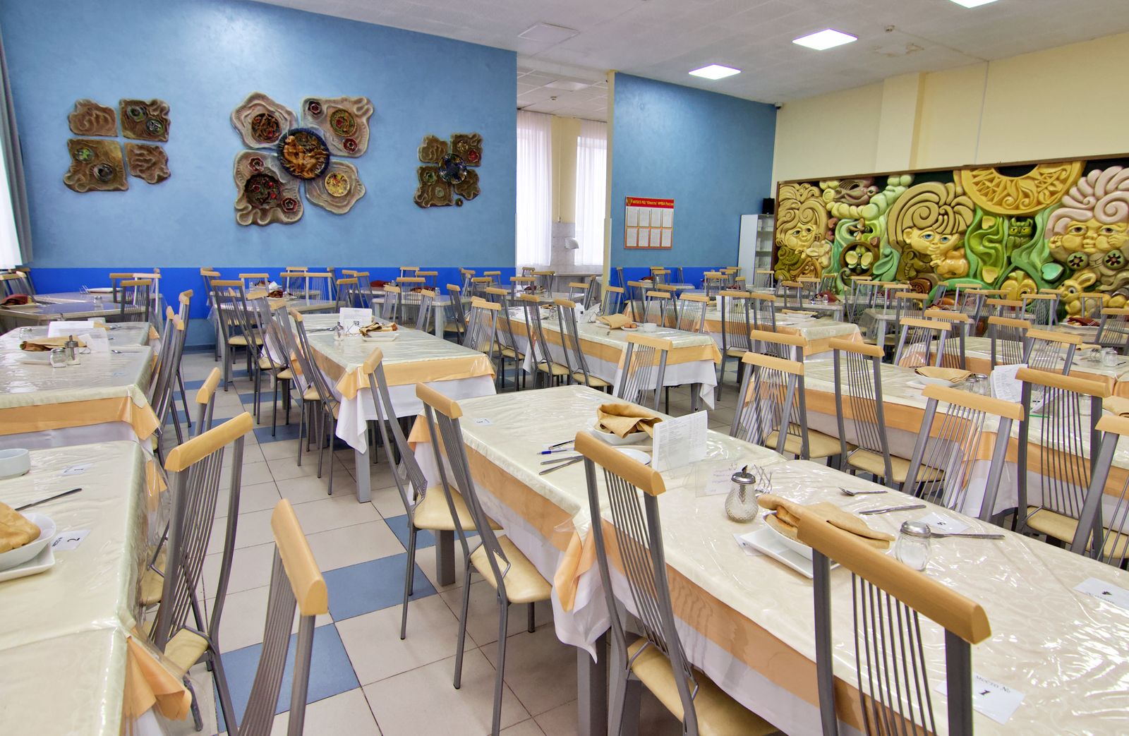 В столовой организованы детские столы, есть стульчики. Питание учитывает детские нужды.