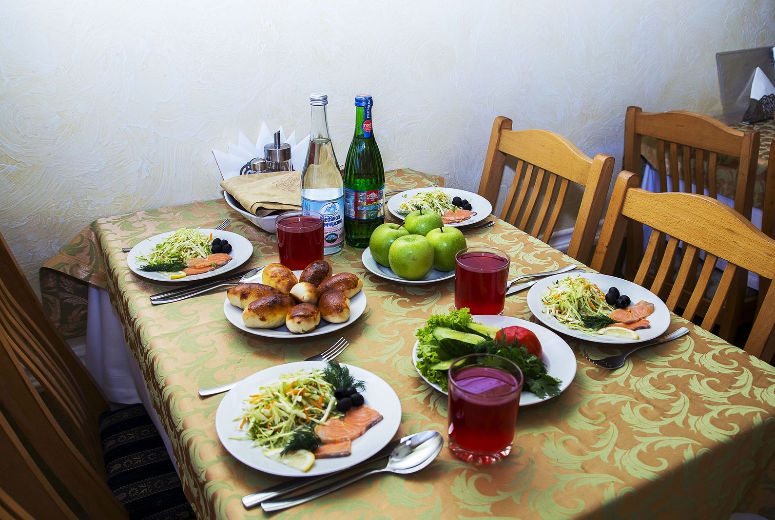 С третьего дня пребывания гости сами выбирают блюда из разрешенного списка — меню заказное. Круглый год в рационе свежие фрукты, овощи, натуральные соки. Все продукты соответствуют государственным стандартам качества. Специалисты контролируют и поступающие ингредиенты, и готовые блюда. Персонал столовой проходит ежедневный медосмотр.