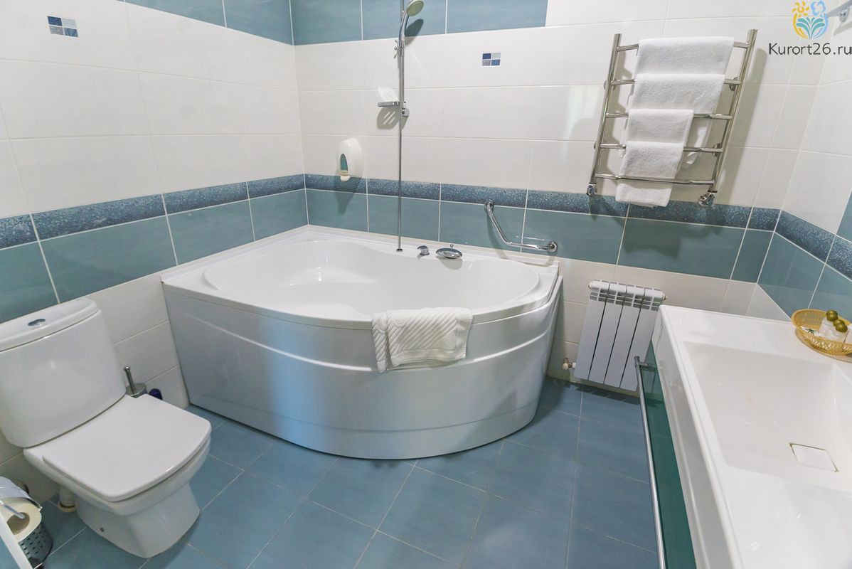 Санузел: Ванна/душ (некоторые номера), фен, косметическое зеркало, набор косметики (гель для душа, шампунь, пенное мыло в диспенсере, шапочка для душа, зубной набор), халаты, набор полотенец (лицевое, ножное, банное).