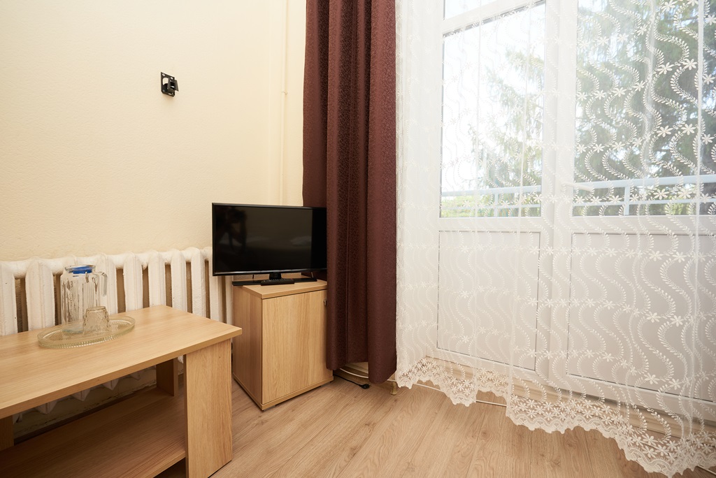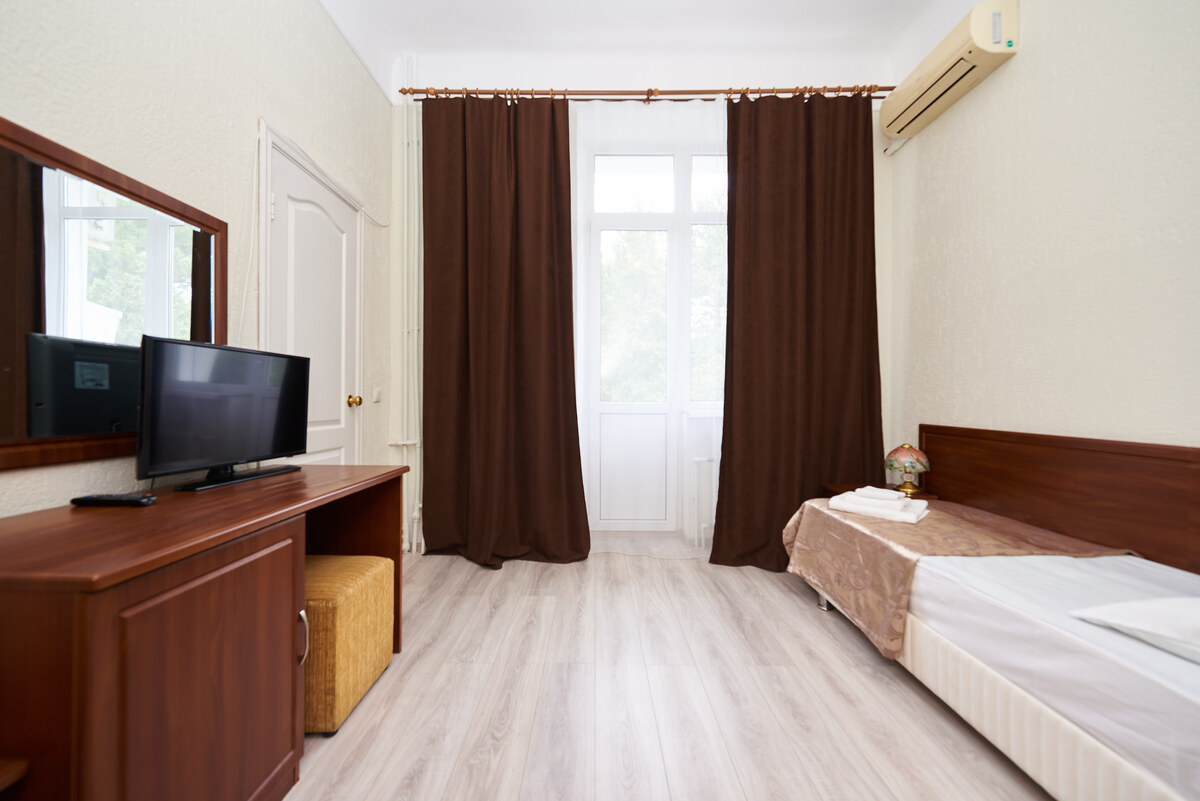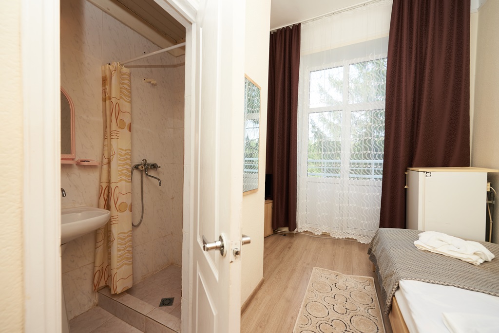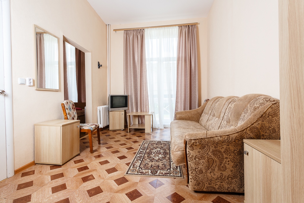 Нахожусь сейчас на отдыхе и лечении. Пока только 4 день. По лечению претензий нет, процедуры согласно диагноза в санаторно-курортной карте. Вот только по 6 штук каждой процедуры маловато. Условия размещения у меня 1 местный улучшенный номер после ремонта, с балконом, ну очень крошечный, матрас удобный, мебель недорогая, но новая.