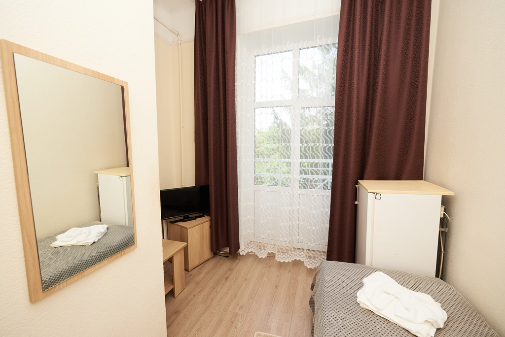 Площадь номера (кв. м.): 17. Мест в номере: 2 (+1 доп.).