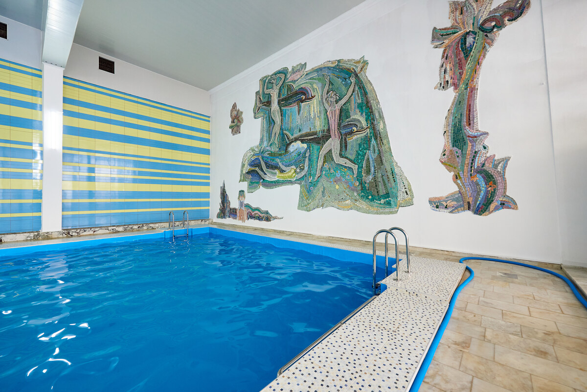 На территории санатория имеется большой крытый бассейн (20x15) с пресной водой.