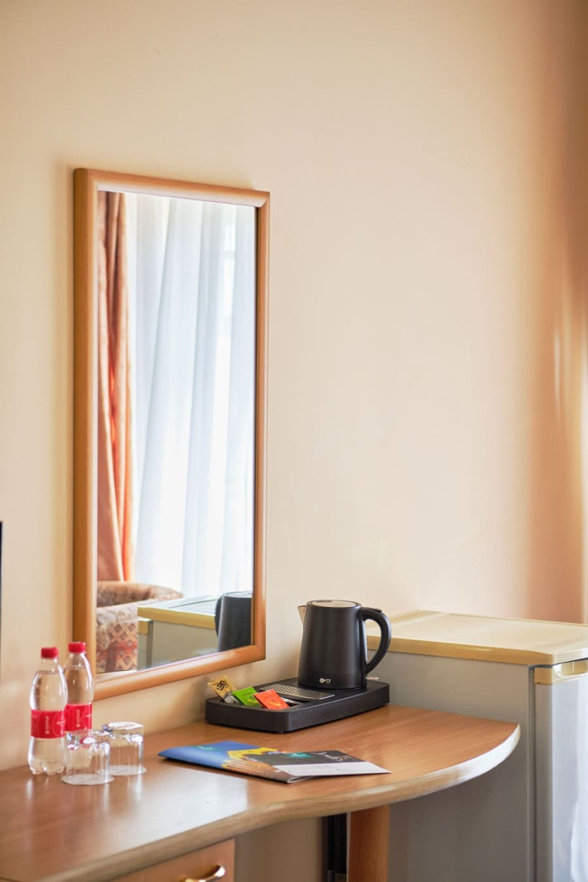 Оборудование: кондиционер, мини-холодильник, сейф, телевизор, телефон, чайный набор посуды, электрочайник.