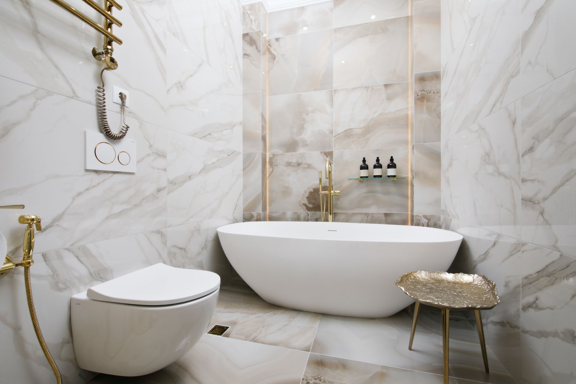 Санузел: биде, с ванной, тапочки, туалетные принадлежности, фен, халат.
