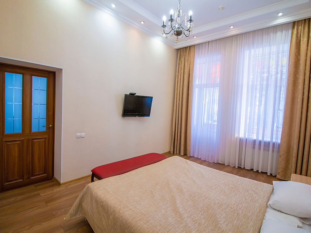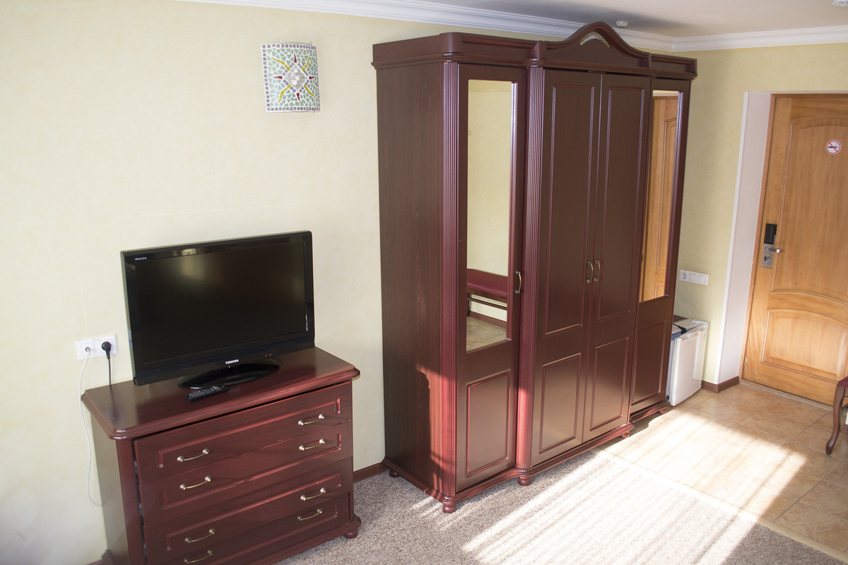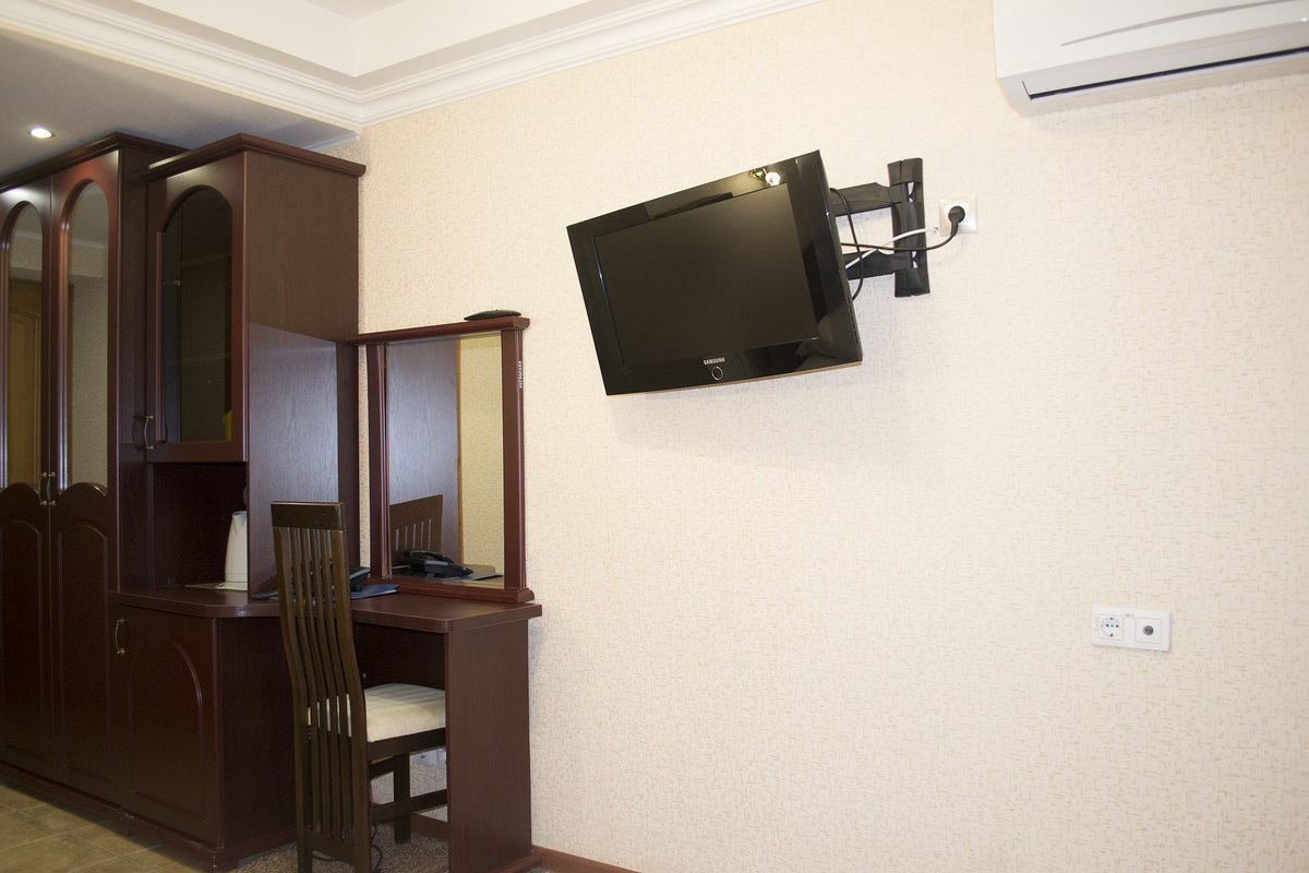 Оборудование: кондиционер, сейф, телевизор, телефон, холодильник, чайный набор посуды, электрочайник.