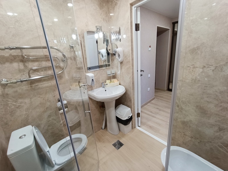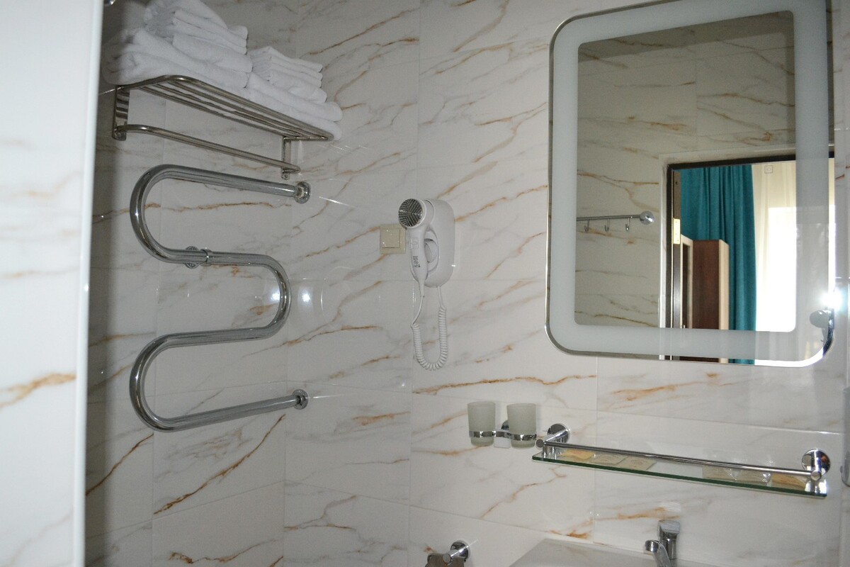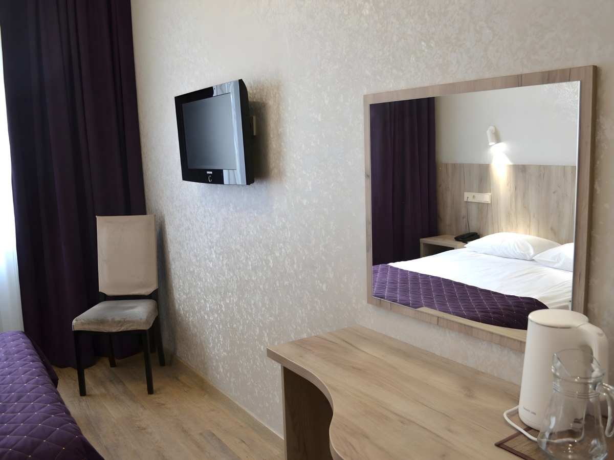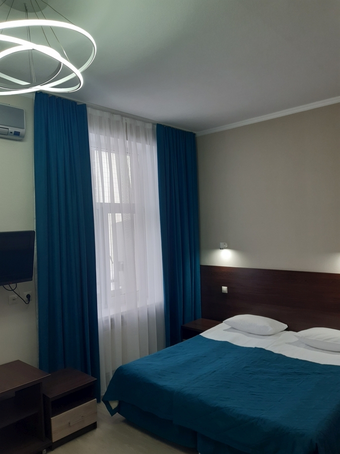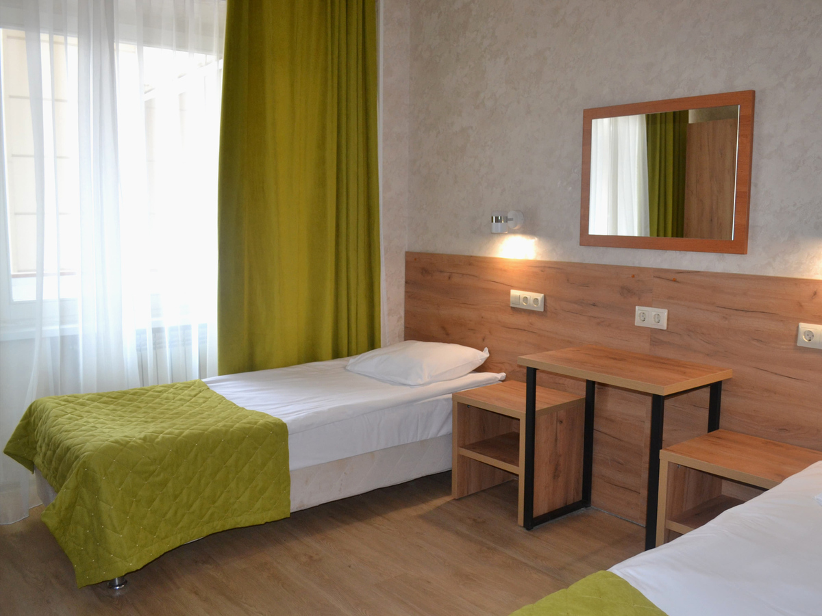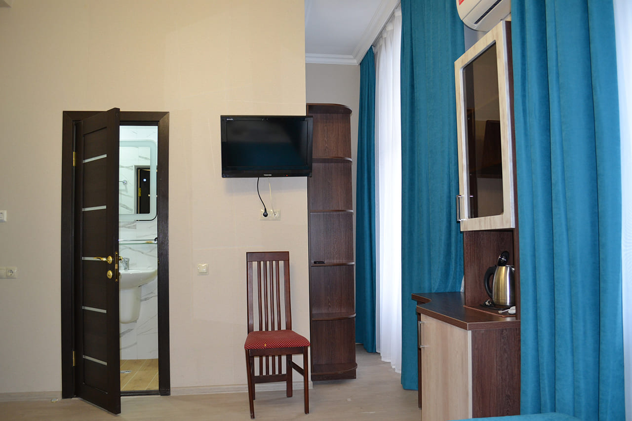 Комфортные номера: свежий ремонт, кондиционер, Wi‑Fi, холодильник, чайная станция, фен, косметички, ежедневная уборка