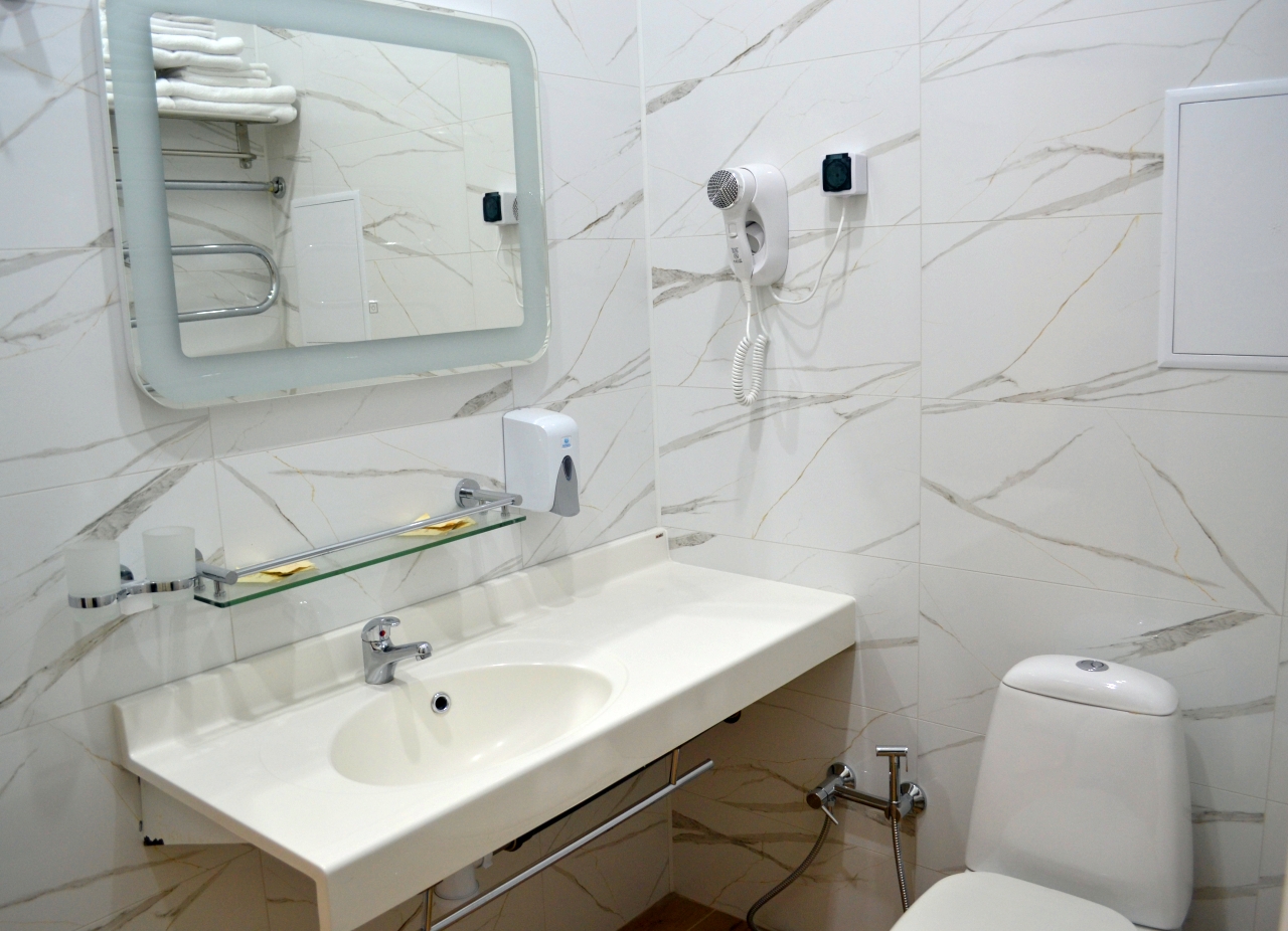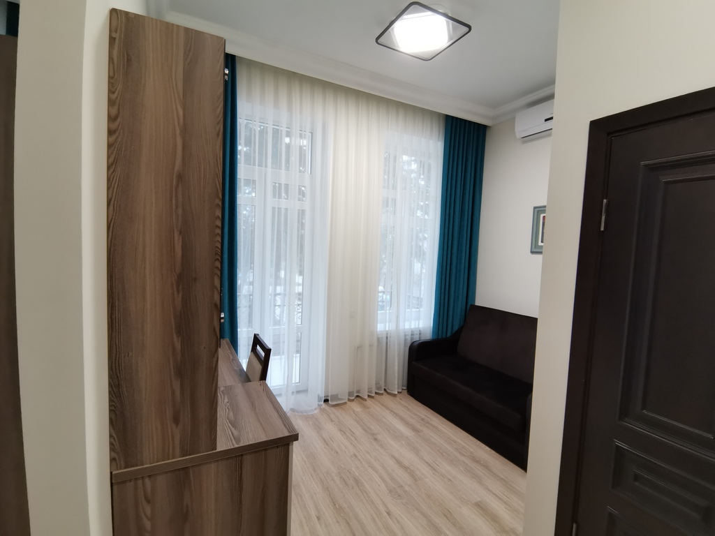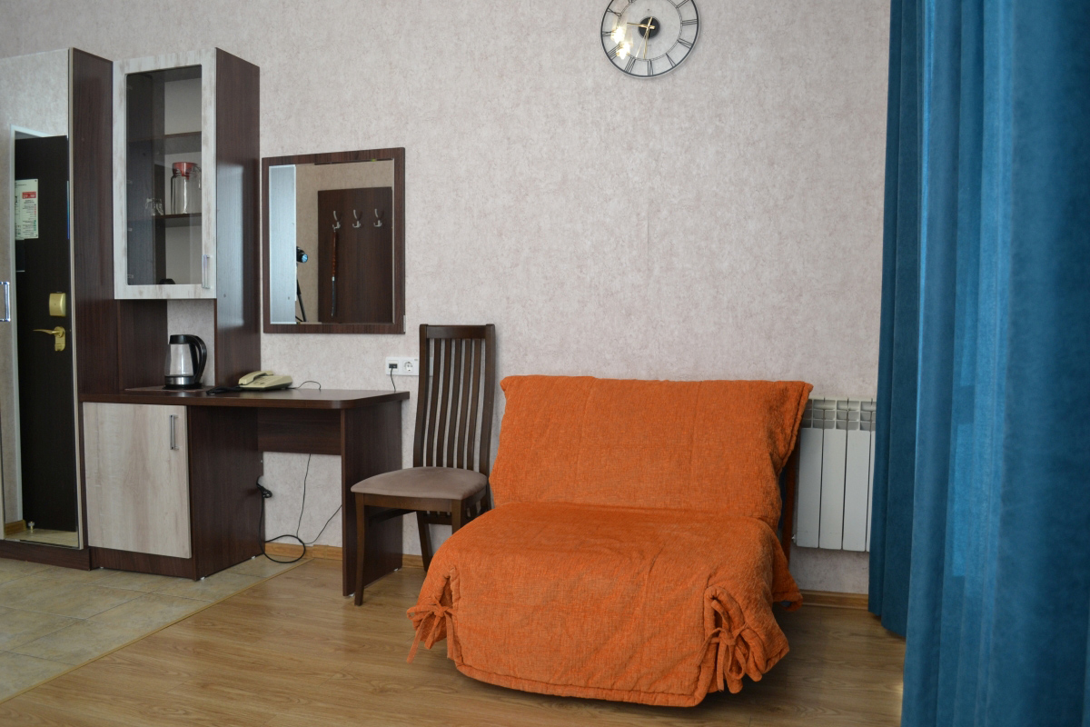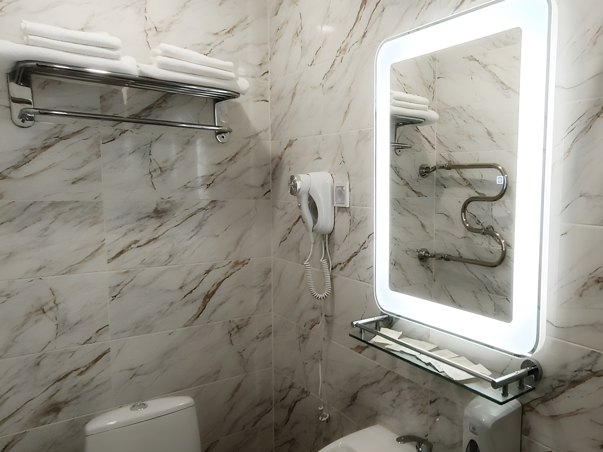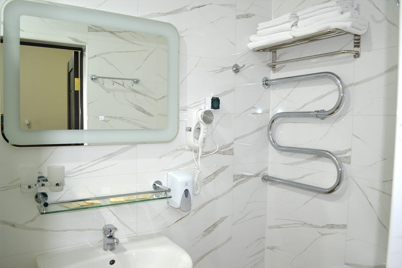 Комфортные номера: свежий ремонт, кондиционер, Wi‑Fi, холодильник, чайная станция, фен, косметички, ежедневная уборка